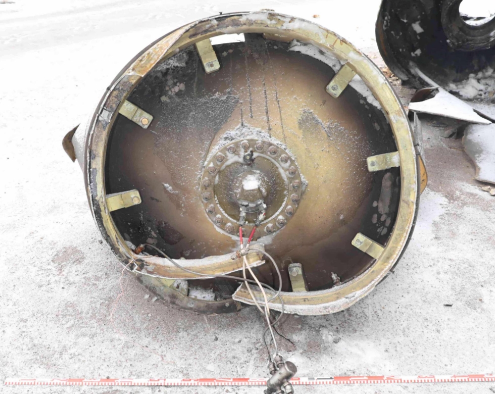 In Ukraine, a CAR field investigation team documented the missile’s rocket motor and its tail section.