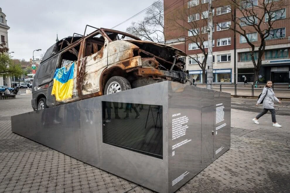 The symbol of the entire collection was the Oksana ambulance, which Slovak volunteers delivered to Ukraine in November 2024. In January 2025, it was destroyed by a Russian drone, killing three people in the attack. The destroyed vehicle was later returned to Slovakia and displayed in fifteen cities in Slovakia and the Czech Republic as a powerful reminder of the war.