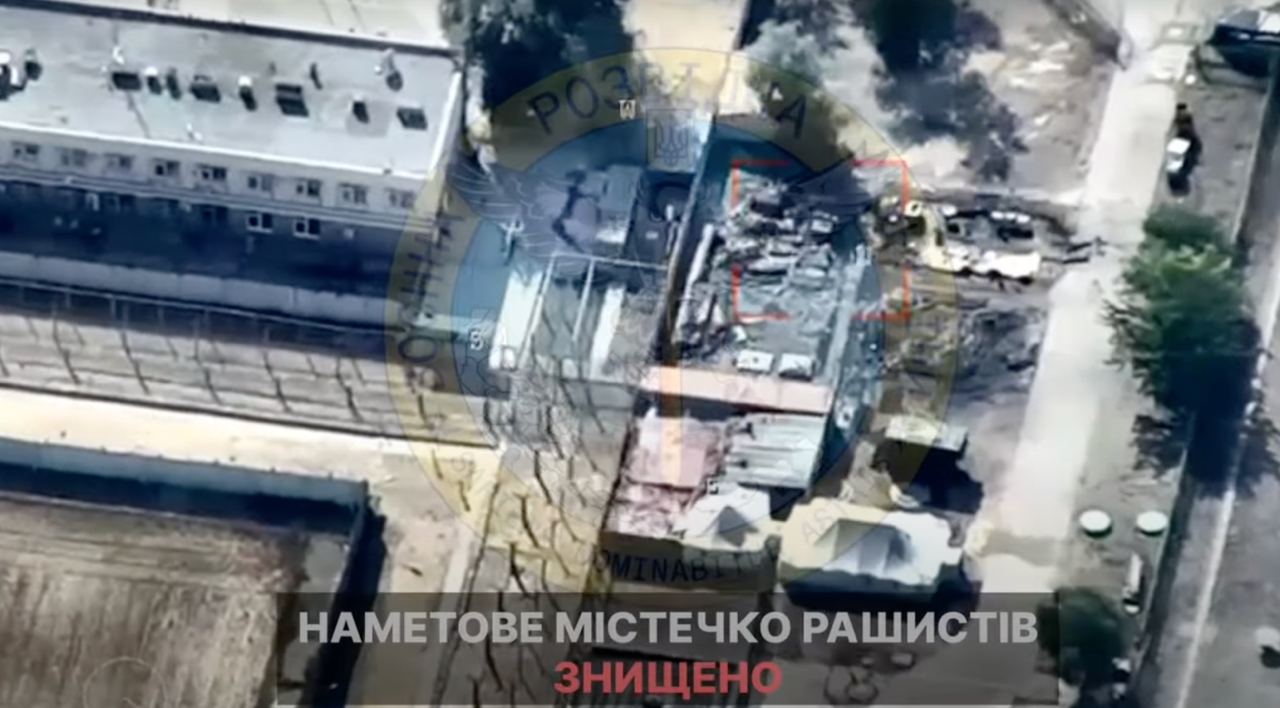 The video captures the moment of the explosion and Russian military scattering from the tent camp.
