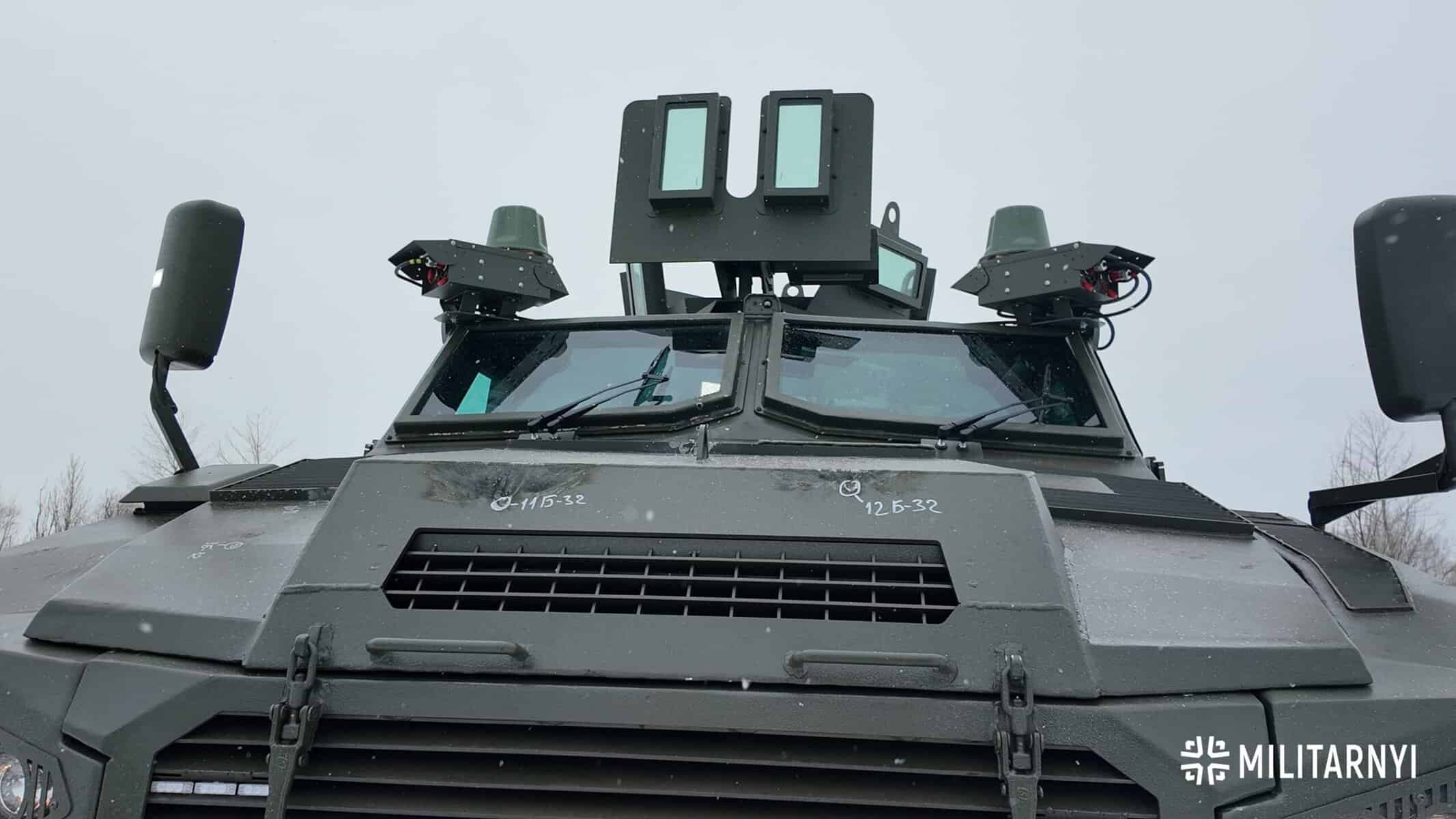 Розробники інтегрували у машину комплекс радіоелектронної боротьби для протидії ворожим ударним дронам та розробили навісний комплект захисних сіток на випадок, якщо РЕБ не впорається з придушенням загрози.