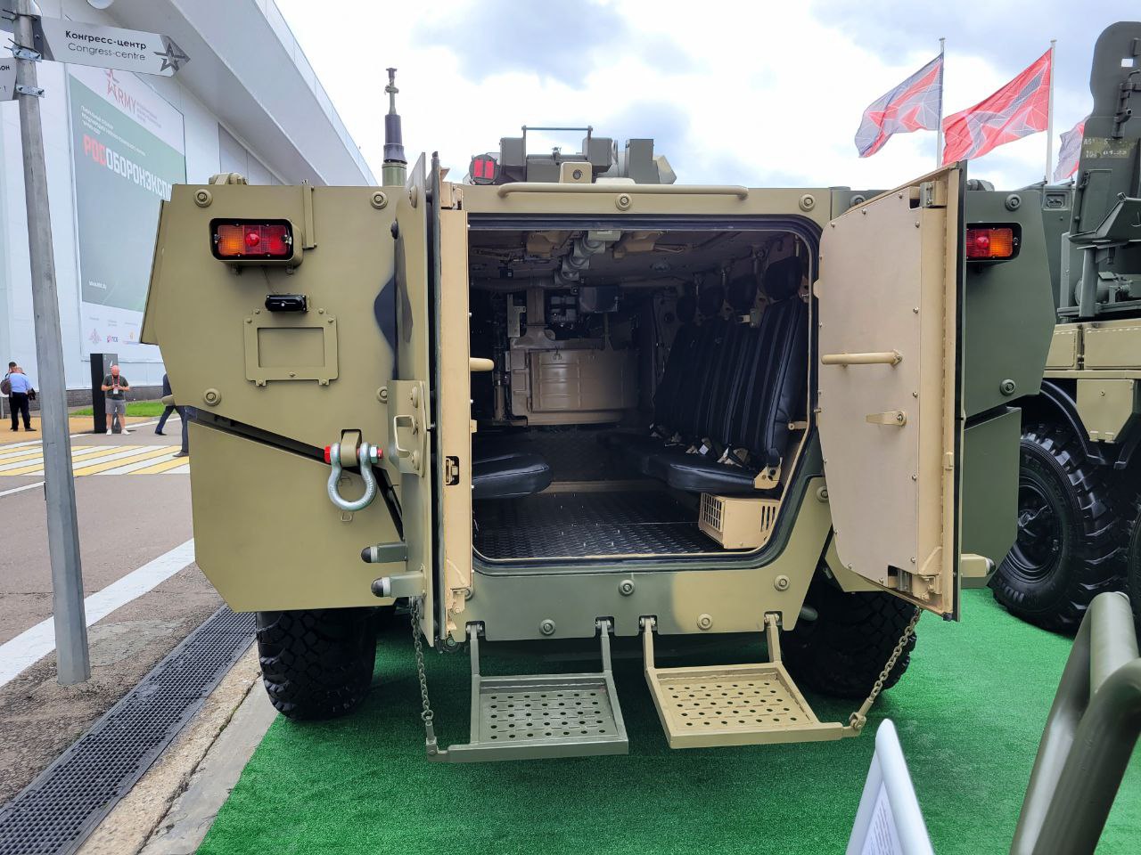 Справжньою новинкою на відкритті виставки став прототип нового бронетранспортера, що був представлений на загал під вже відомим індексом “БТР-82”. Машина виконана у новому, для російської бронетанкової школи, компонуванні з розміщенням десантного відділення позаду та двигуном спереду.