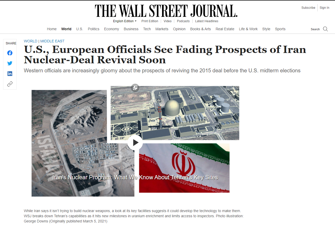 Іран: Американські та європейські чиновники дедалі похмуріше дивляться на перспективи відновлення ядерної угоди з Іраном 2015 року перед проміжними виборами в США, оскільки посилення вимог з боку Тегерана викликає сумніви щодо його готовності найближчим часом укласти угоду, повідомляє WSJ.