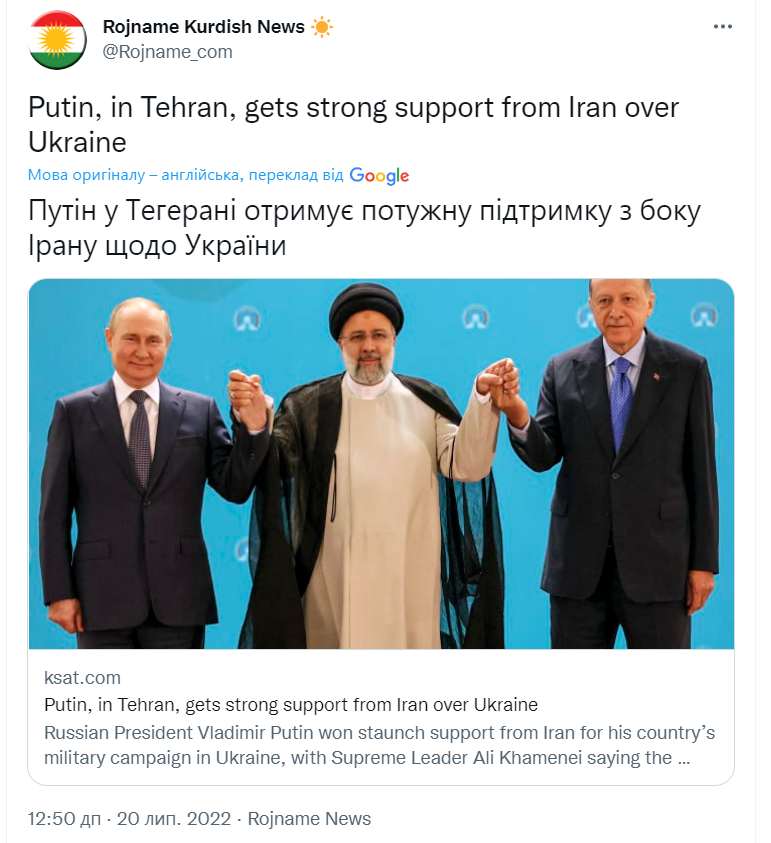 Іран: Після цього відбулася спільна тристороння зустріч у формі «Сьомого тристороннього саміту Астанінського формату». Президент Раїсі з самого початку намагався створити дружню атмосферу, однак по реакції Ердогана – зрозуміло, що то була так собі ідея.