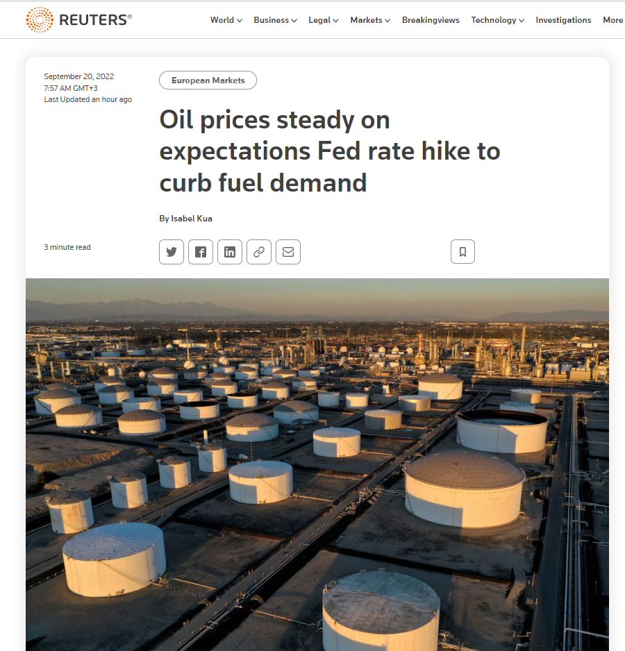 Саудівська Аравія: Ціни на нафту стабілізувалися у вівторок після зростання на попередній сесії через побоювання, що подальше підвищення процентної ставки в США цього тижня для приборкання інфляції стримає економічне зростання та підживить попит у найбільшому споживачі нафти у світі.