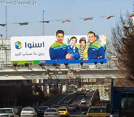 Із кумедного. Як відомо в Ісламській республіці заборонено використання зображень жінок у зовнішній рекламі, тому рекламодавці вирішили використати зображення чоловіків, яке символізує сім’ю. Дивно, але це фото розлютило владу режиму більше, ніж раніше, коли жінкам дозволили з’являтися в рекламі)