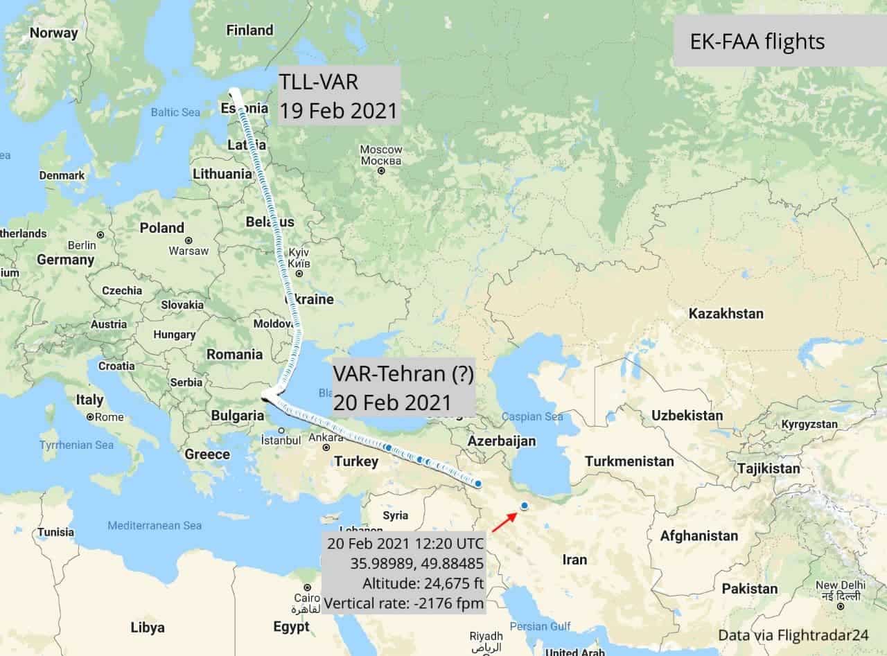 Boeing 737-300 рег.EK-FAA слідував рейсом з Варни в ОАЕ на обслуговування, але проходячи над Іраном включив помилкове сповіщення про екстрену посадку і приземлився в аеропорту Мехрабад в Тегерані і там зник. Гроші за літаки Іран переправляє готівкою в Ереван.