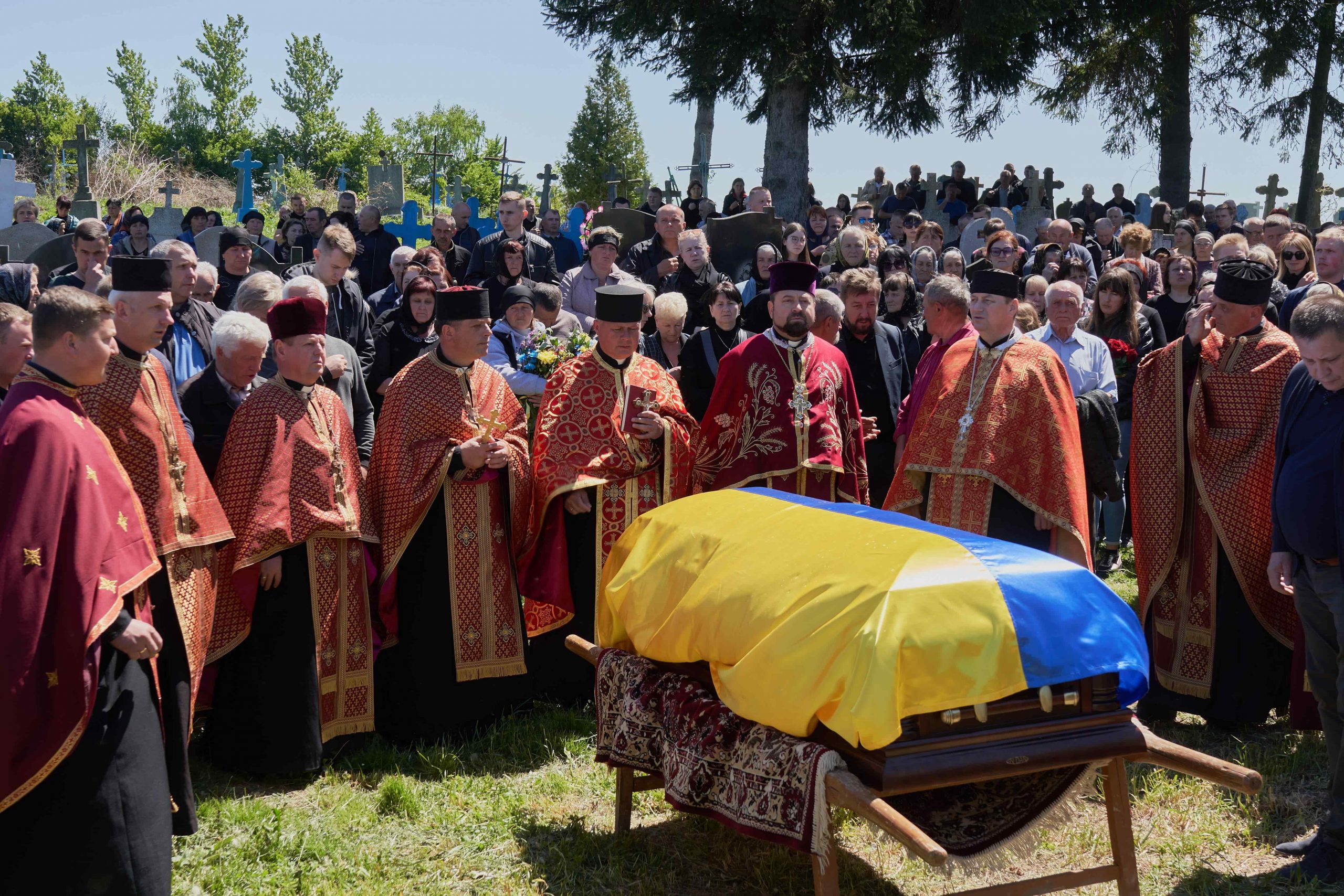 У церемонії прощання взяли участь понад 200 осіб, серед яких учасники російсько-української війни, військовослужбовці сил територіальної оборони ЗСУ, студенти та викладачі КНУ імені Тараса Шевченка, представники громадських об’єднань, українське духовенство. За участі Військового інституту КНУ імені Тараса Шевченка був виконаний сучасний український військовий поховальний ритуал.