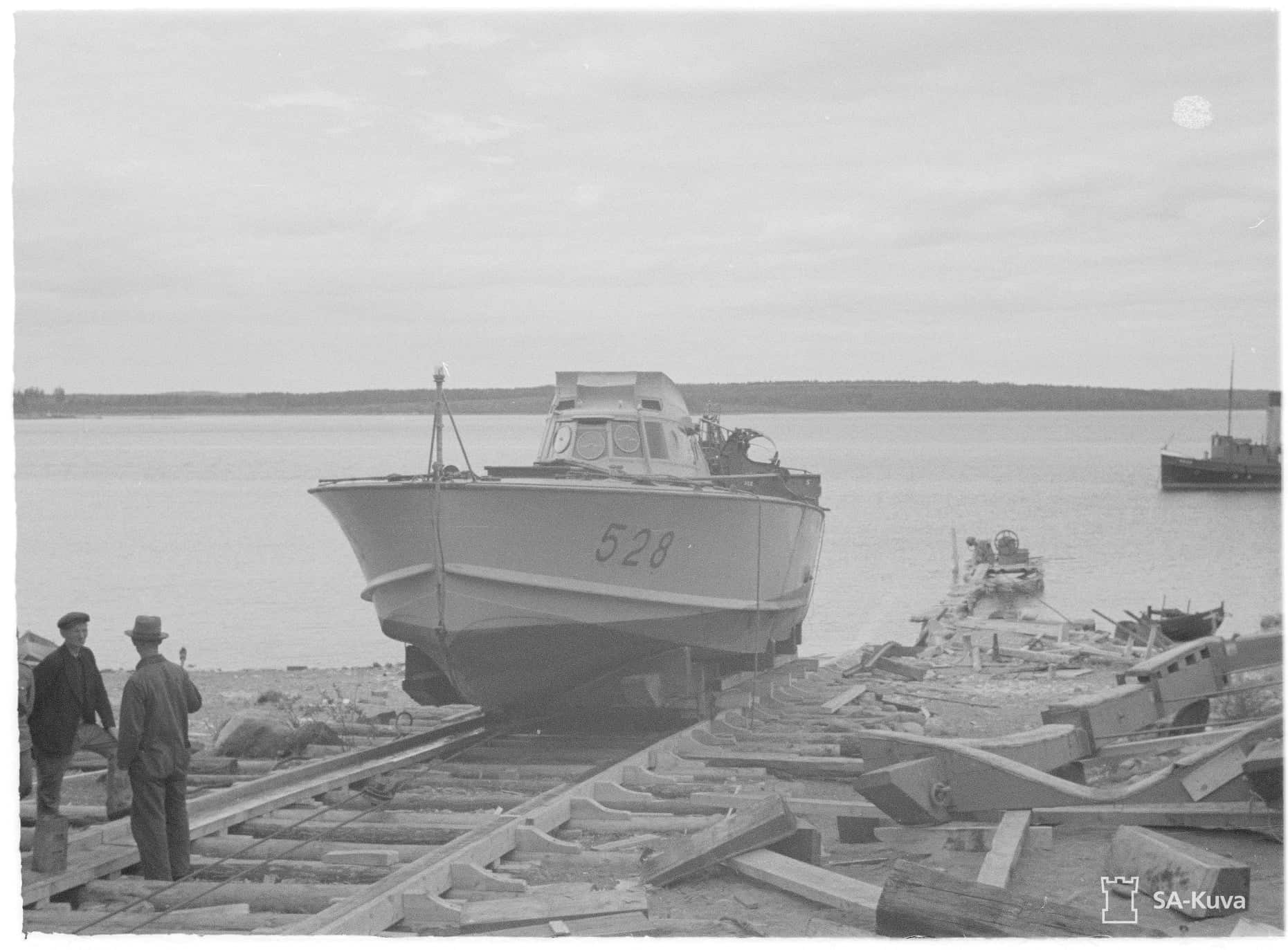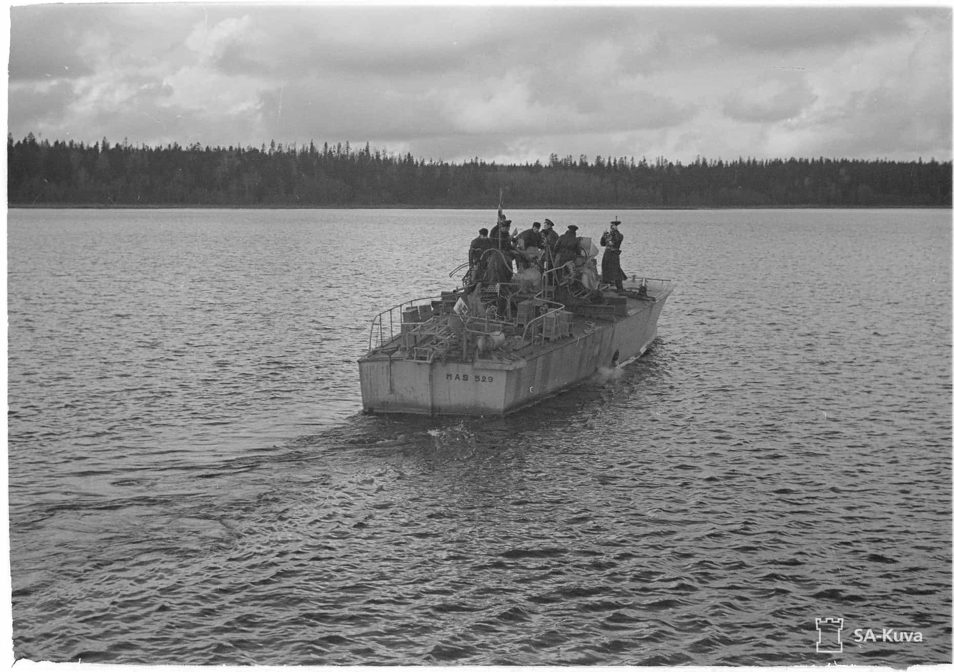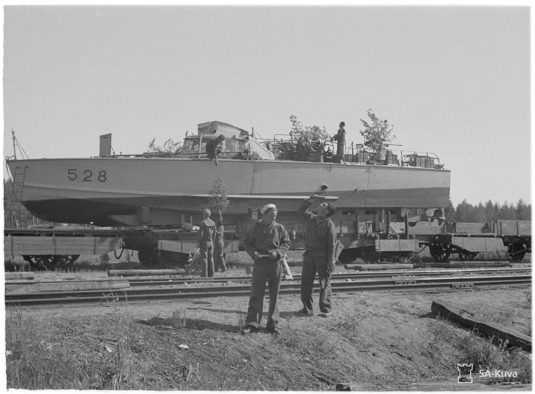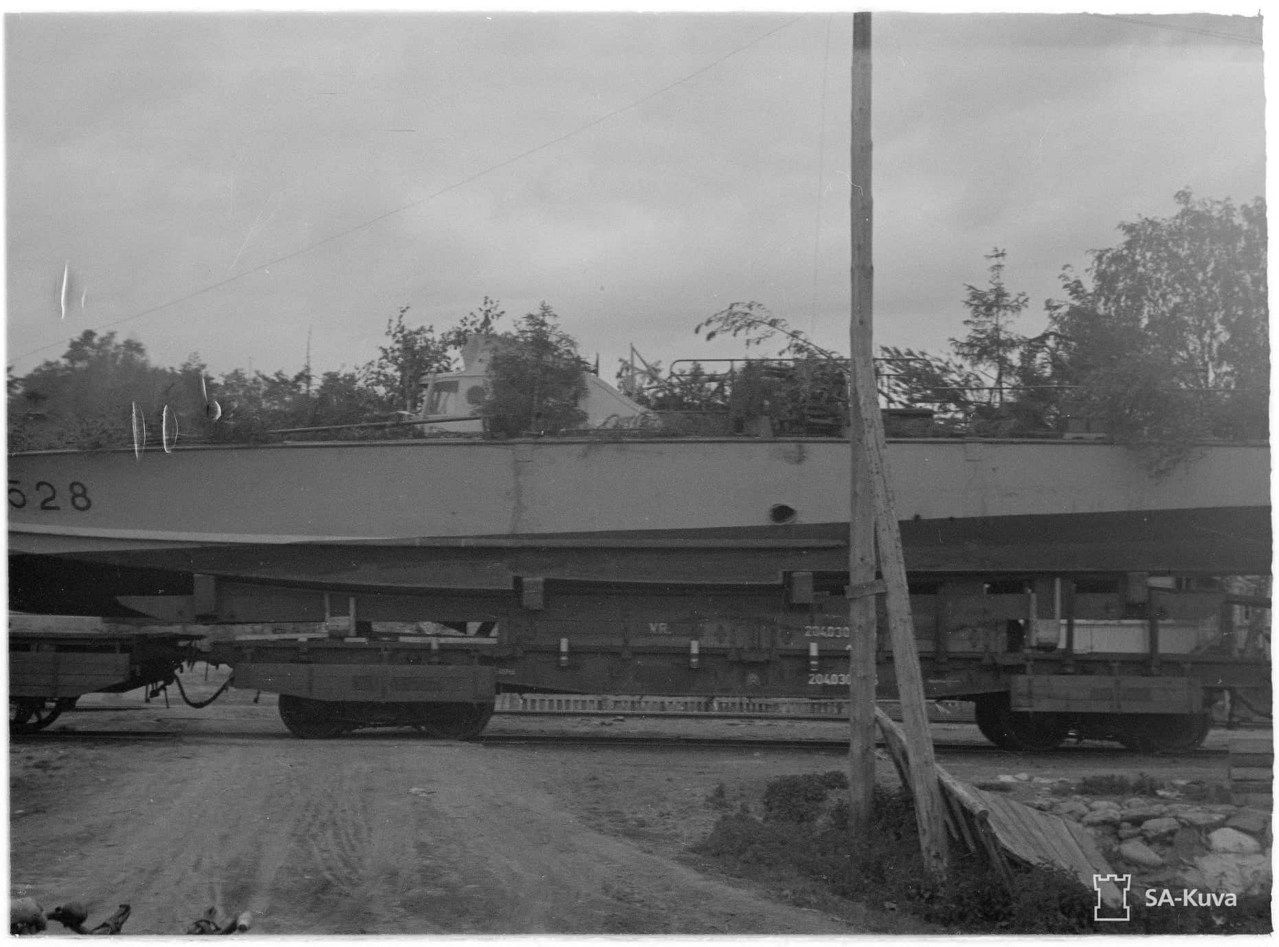 Це зайняло 26 днів, катери транспортували залізницею та автошляхами на спеціальних тралах до Щецина звідки пароплавом їх перевезли через Балтійське море в Лахденпохью і вже там спустили на воду.