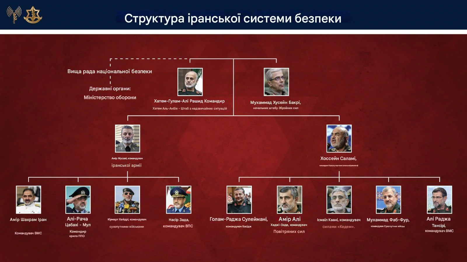 На цей час відомо про ліквідацію низки високопосадовців Ірану з числа командирів КВІР та Повітряно-космічних сил, у тому числі командувача КВІР Хоссейна Салямі. Багато вражених цілей залишаються непідтвердженими. ЦАГАЛ оприлюднив орієнтовний список ліквідованих цілей.