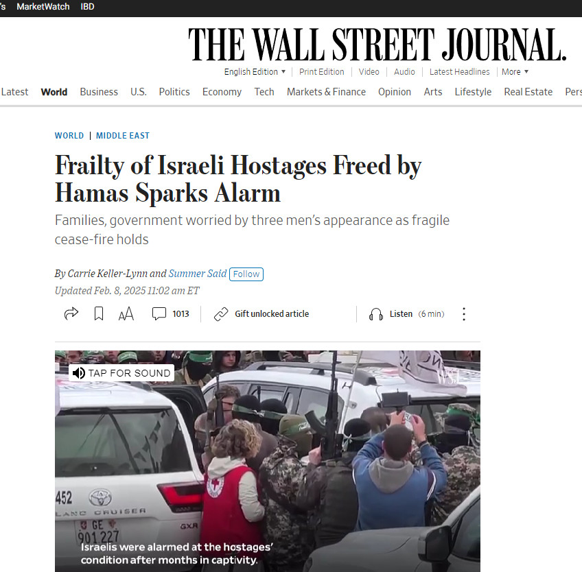 Зовнішній вигляд заручників різко контрастував із заручниками, переважно жінками, яких звільнили під час попередніх обмінів у межах першого етапу угоди про припинення вогню. Ті ізраїльтяни виглядали здоровішими, зазвичай у хорошому фізичному стані й без ознак різкої втрати ваги. Чоловіки, звільнені в суботу, виглядали ошелешеними, їхні обличчя зблідли, а щоки запали.