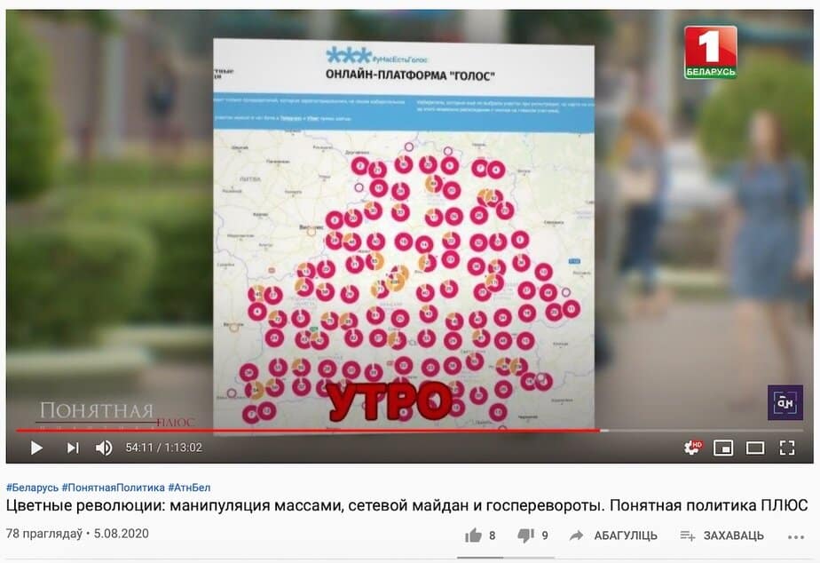 Веб-платформу “Голос” білоруська влада намагалася дискредитувати вчора ввечері на каналі «Білорусь1» .