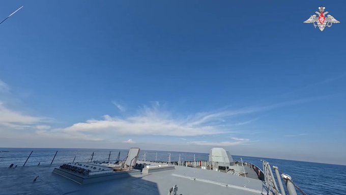 Однак, вчора русня виклала відео своїх навчань в східному Середземномор’ї, в яких застосовувалася гіперзвукова ракета «Циркон», запущена з фрегата «Адмірал Горшков». Повідомляється, що у навчаннях було задіяно 1000 чоловік особового складу, 10 кораблів і 24 літаки, проведені випробування крилатих ракет “Калібр” з підводного човна і протикорабельних ракет “Онікс” з берегових систем.