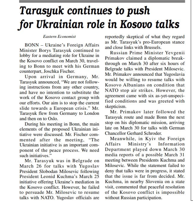 Україна також намагалася бути посередником у югославській кризі, але вона не мала достатнього політичного впливу.