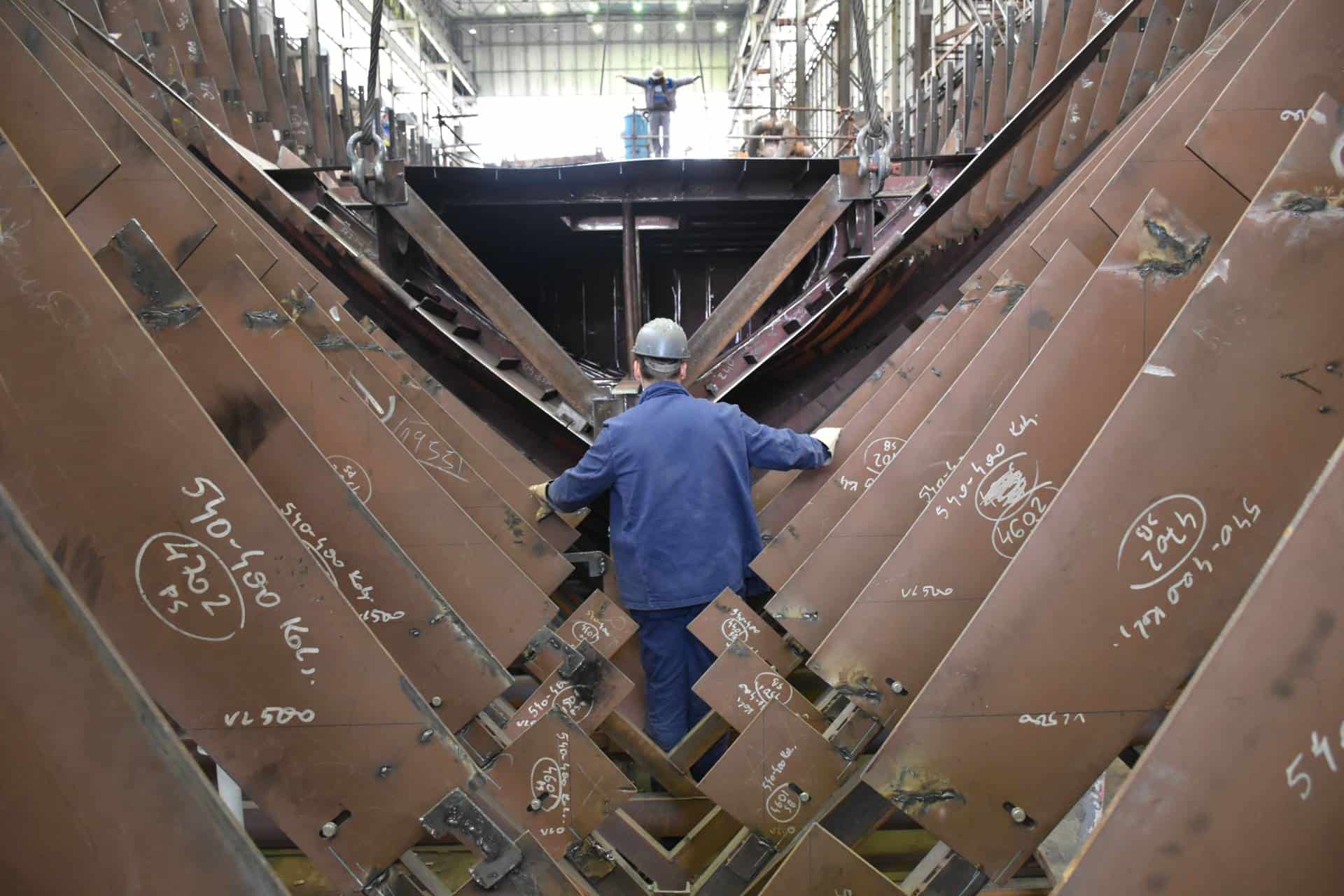 Вже завершено виготовлення носових частин корпусу кораблів берегової охорони 541 і 542, кілі для яких були закладені на початку вересня 2020 року.