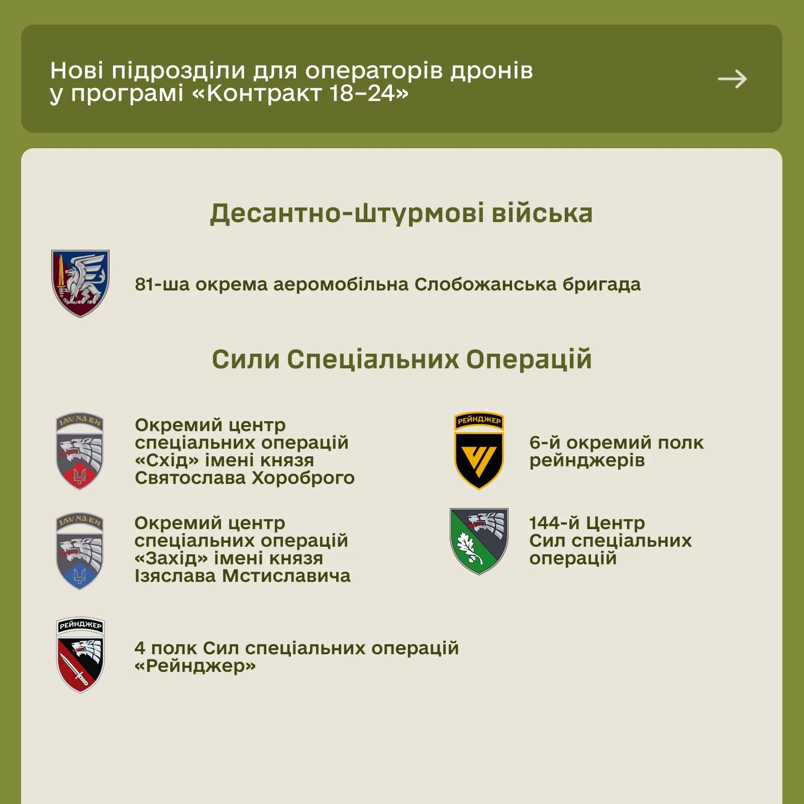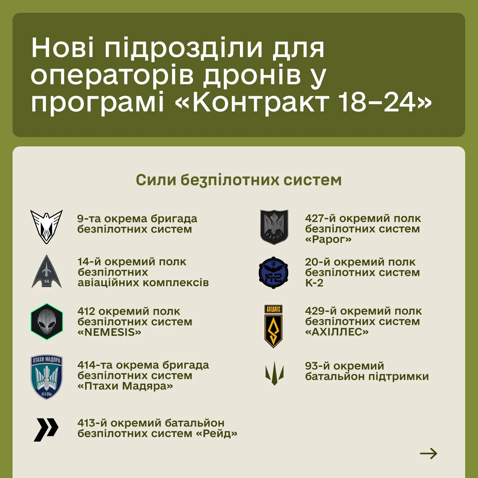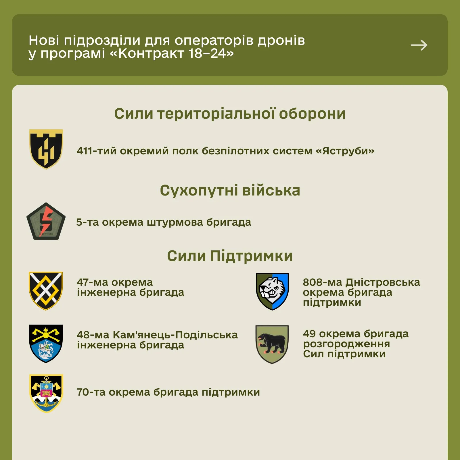 Як зазначив Павло Паліса, право на залучення молоді на контракт для операторів безпілотних систем отримали ті ж підрозділи, які мали таке право в межах базового піхотного контракту.