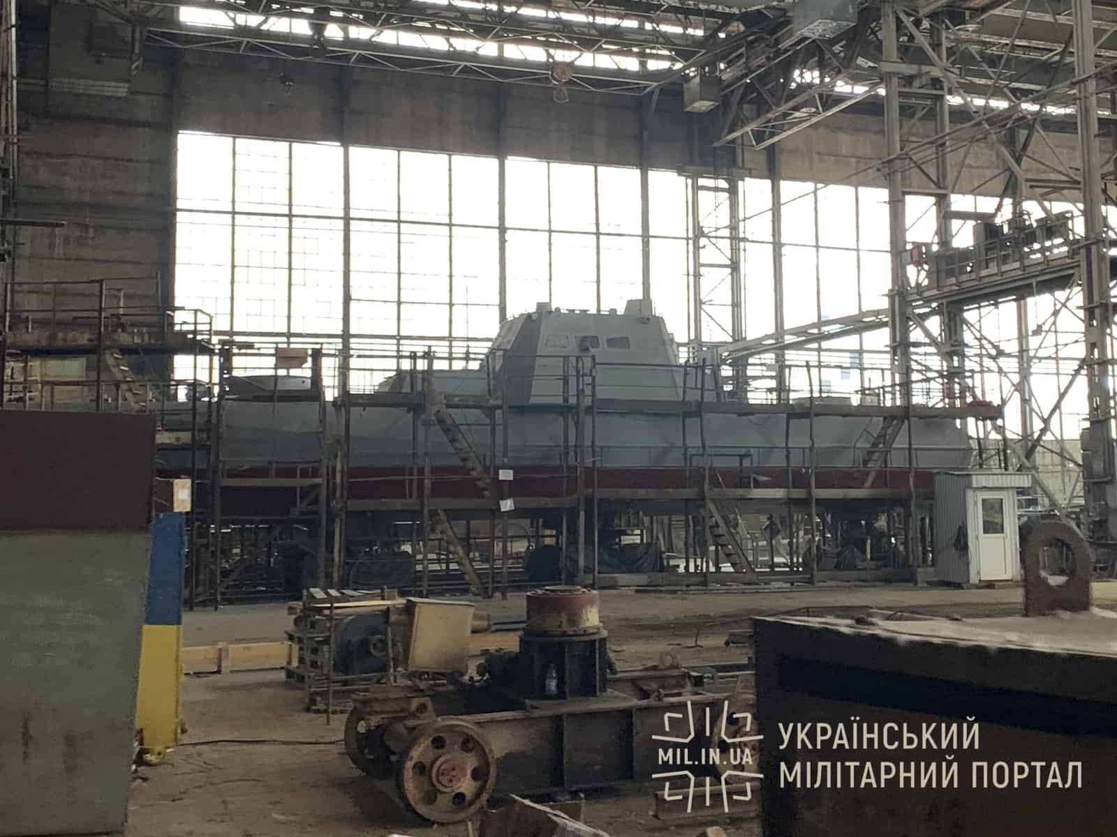 Як видно зі світлин, корпусу майбутнього 3-го десантно-штурмового катеру проєкту 58503 фактично не існує та є лише частини, котрі не встигли зібрати.