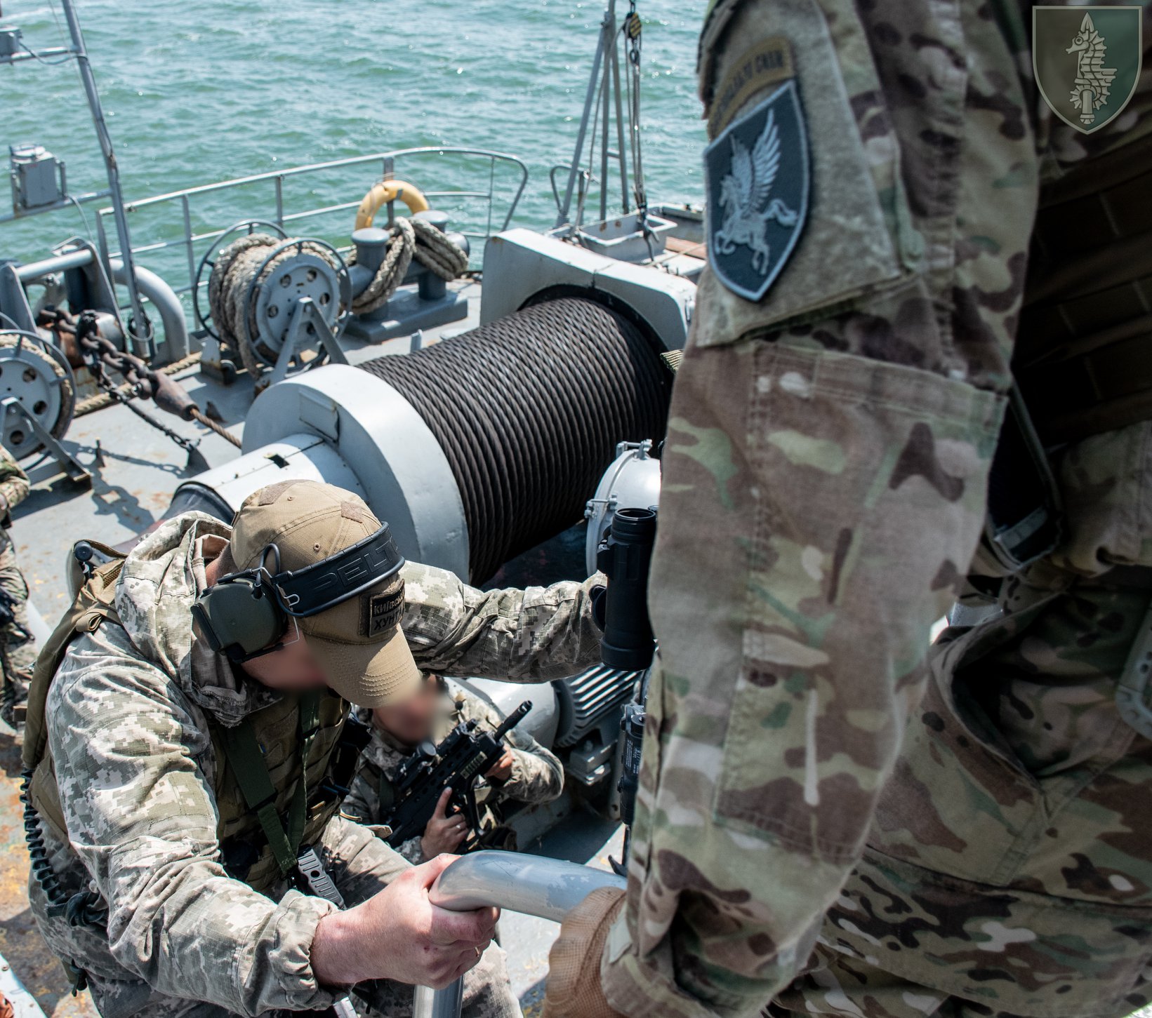 Абордажні групи морського центру відпрацьовують вихід на борт, штурм корабля, зачистку корабля, взяття корабля під контроль.