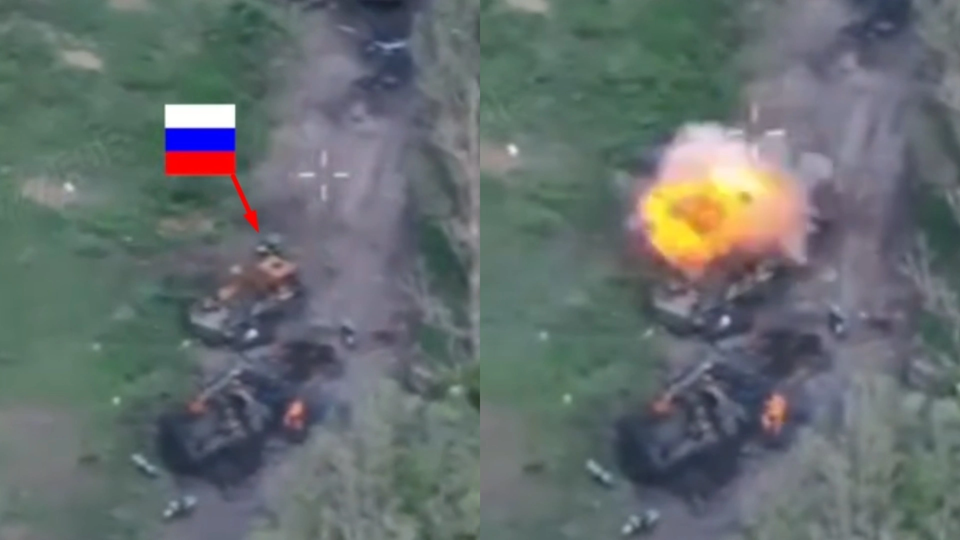 Втім, досвідчені українські оператори дронів змогли залетіти під днище техніки та знайти там росіян.