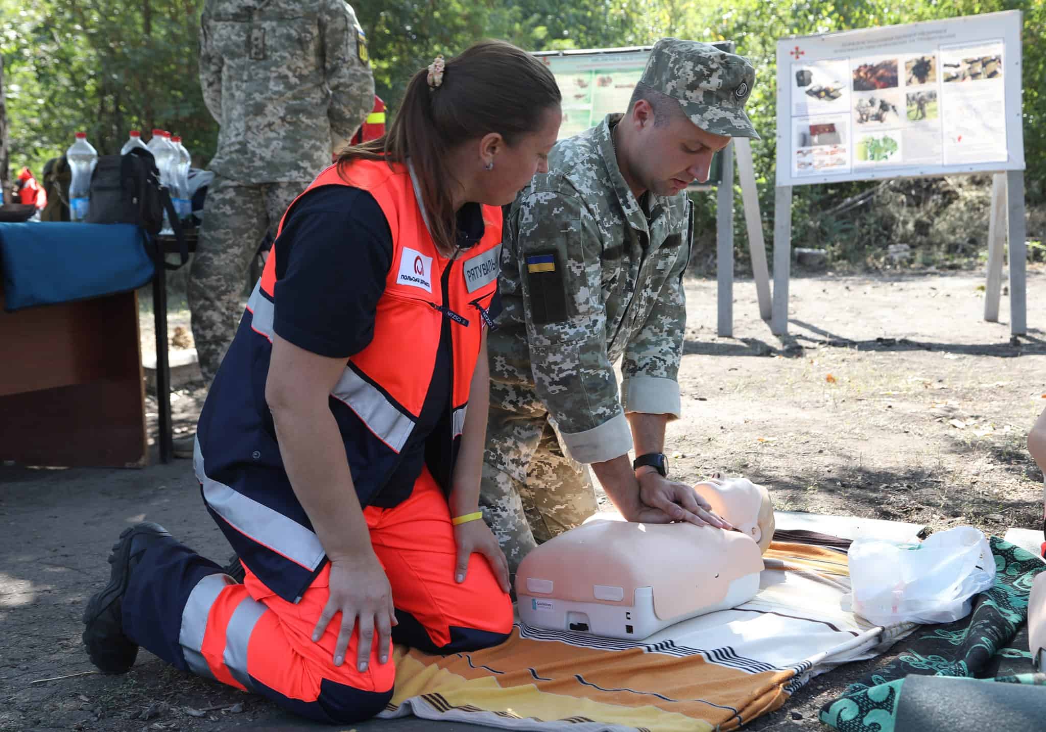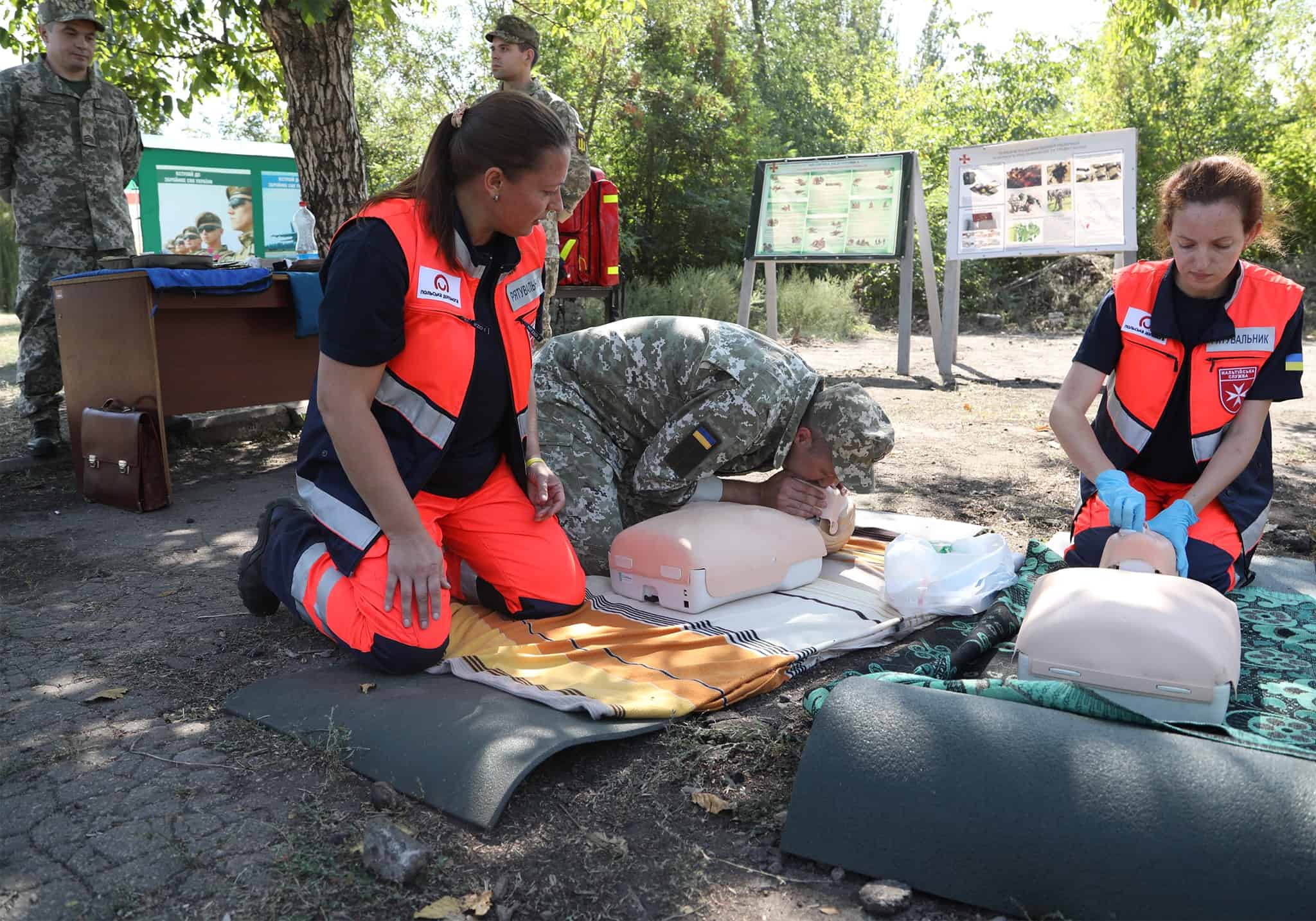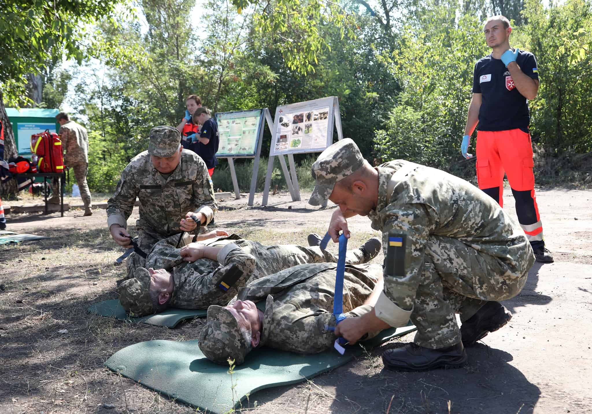 У другий день офіцери резерву бригади вирушили на відпрацювання практичних навичків з вогневої, медичної, базової тактичної підготовки. До практичних занять було залучено понад 150 осіб з різних куточків Донецької області.