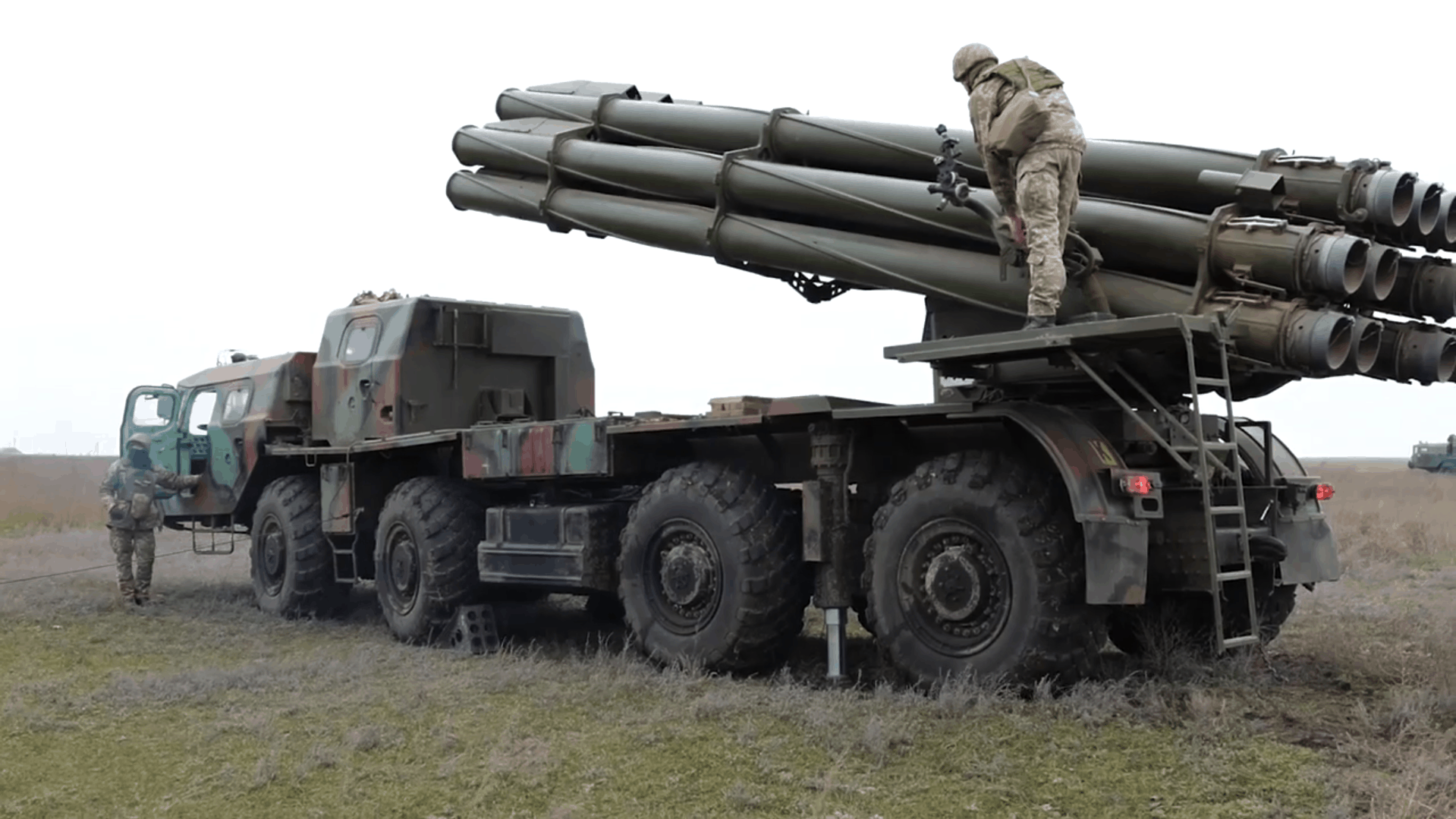 На навчаннях військові використовували реактивну систему залпового вогню калібру 300 мм БМ-30 «Смерч».