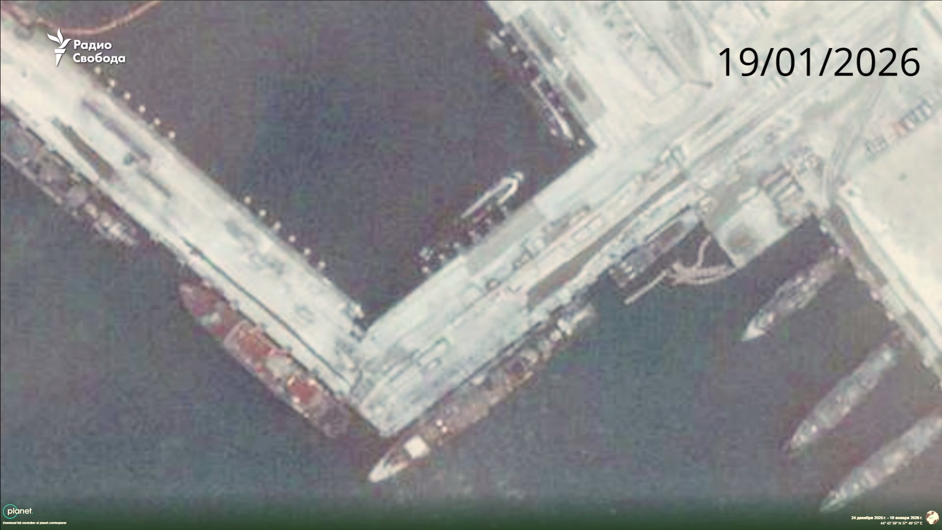 35 days after a Ukrainian naval drone strike on the port of Novorossiysk, a Russian submarine – described as ‘completely intact’ after the strike by the Russian Ministry of Defense – has not moved a single inch, as a @planet satellite image taken today, January 19, shows. pic.twitter.com/YhP34MAcVH