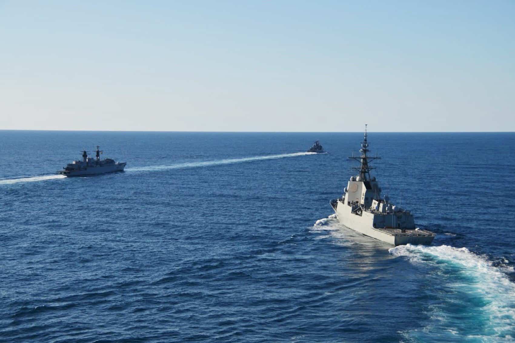 Одним з перших епізодів навчань стало ведення патрулювання визначених морських ділянок в режимі активного радіообміну інформацією, відпрацювання тактичного маневрування з ухиленням від атак противника та відбиття швидкісних малорозмірних цілей у морі із застосуванням озброєння.