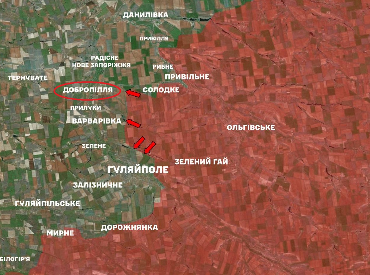 На Гуляйпільському напрямку російські війська провалили спробу штурму позицій українських прикордонників під Добропіллям.