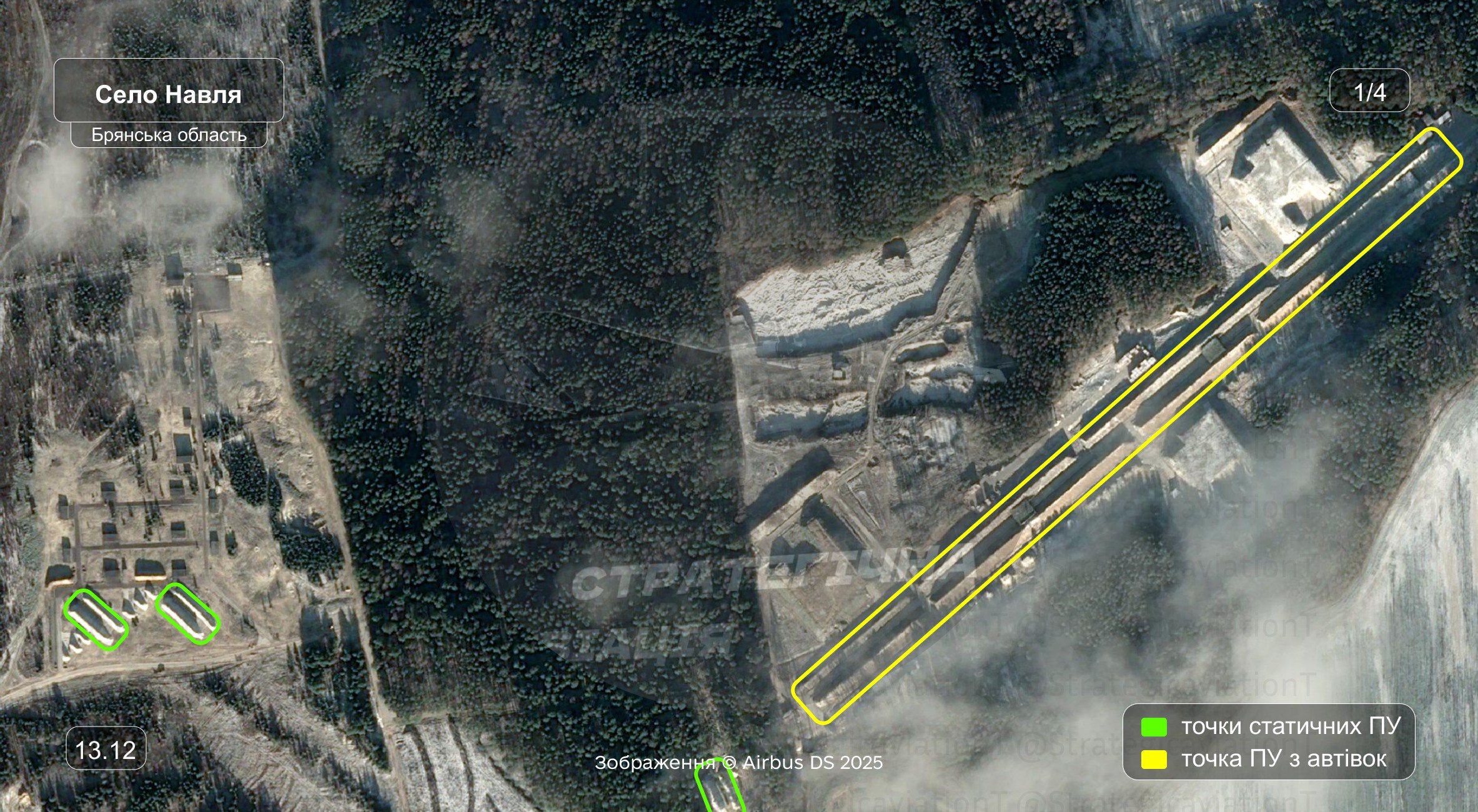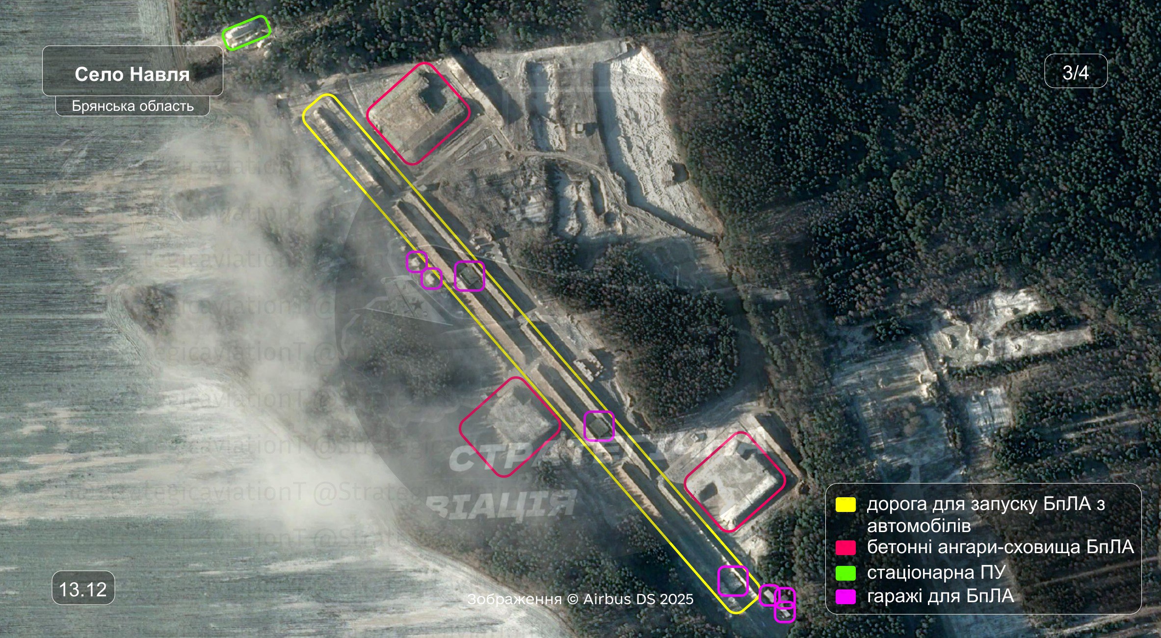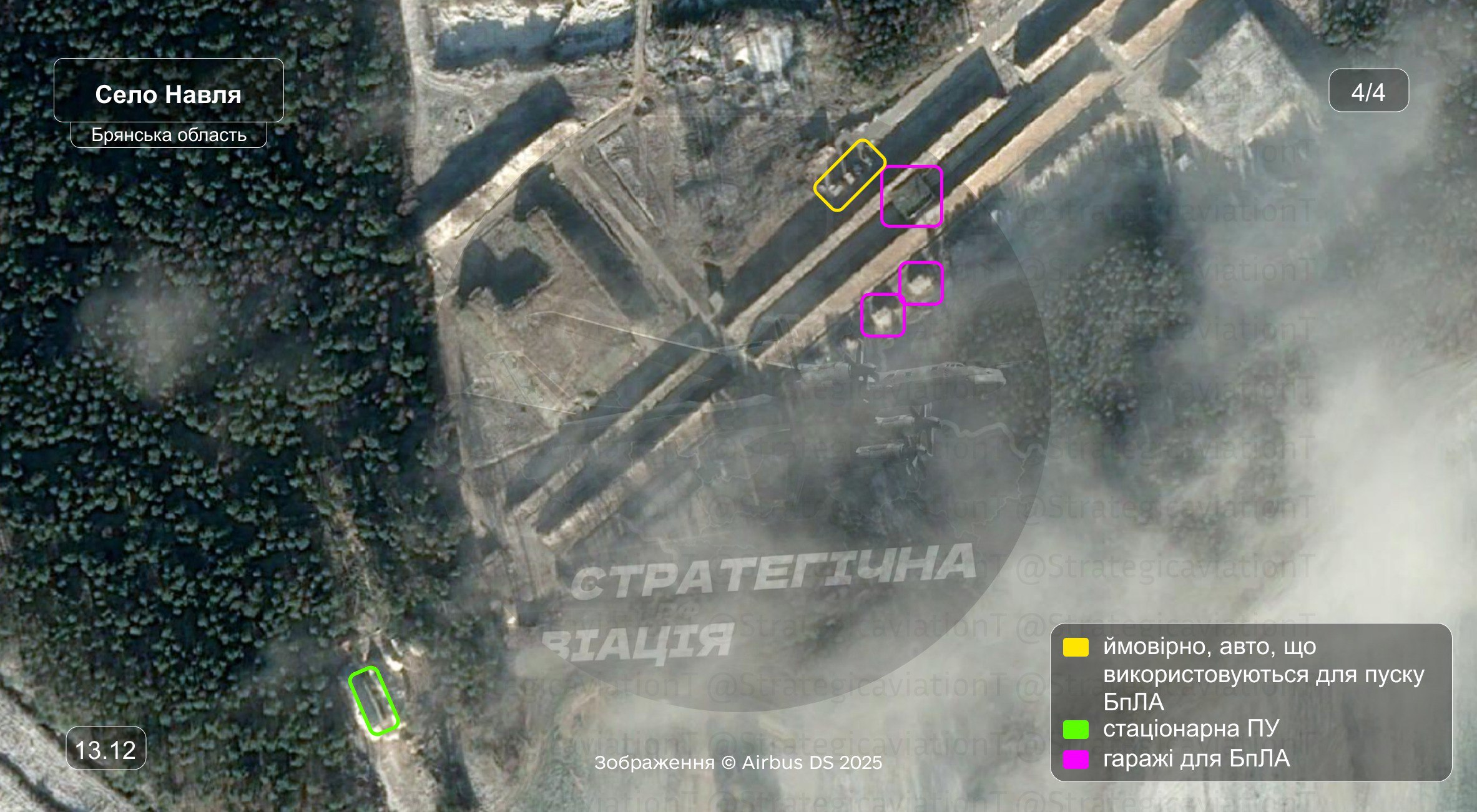 Російські війська розширили майданчик для запуску дронів типу «Шахед» по території України в селищі Навля Брянської області.