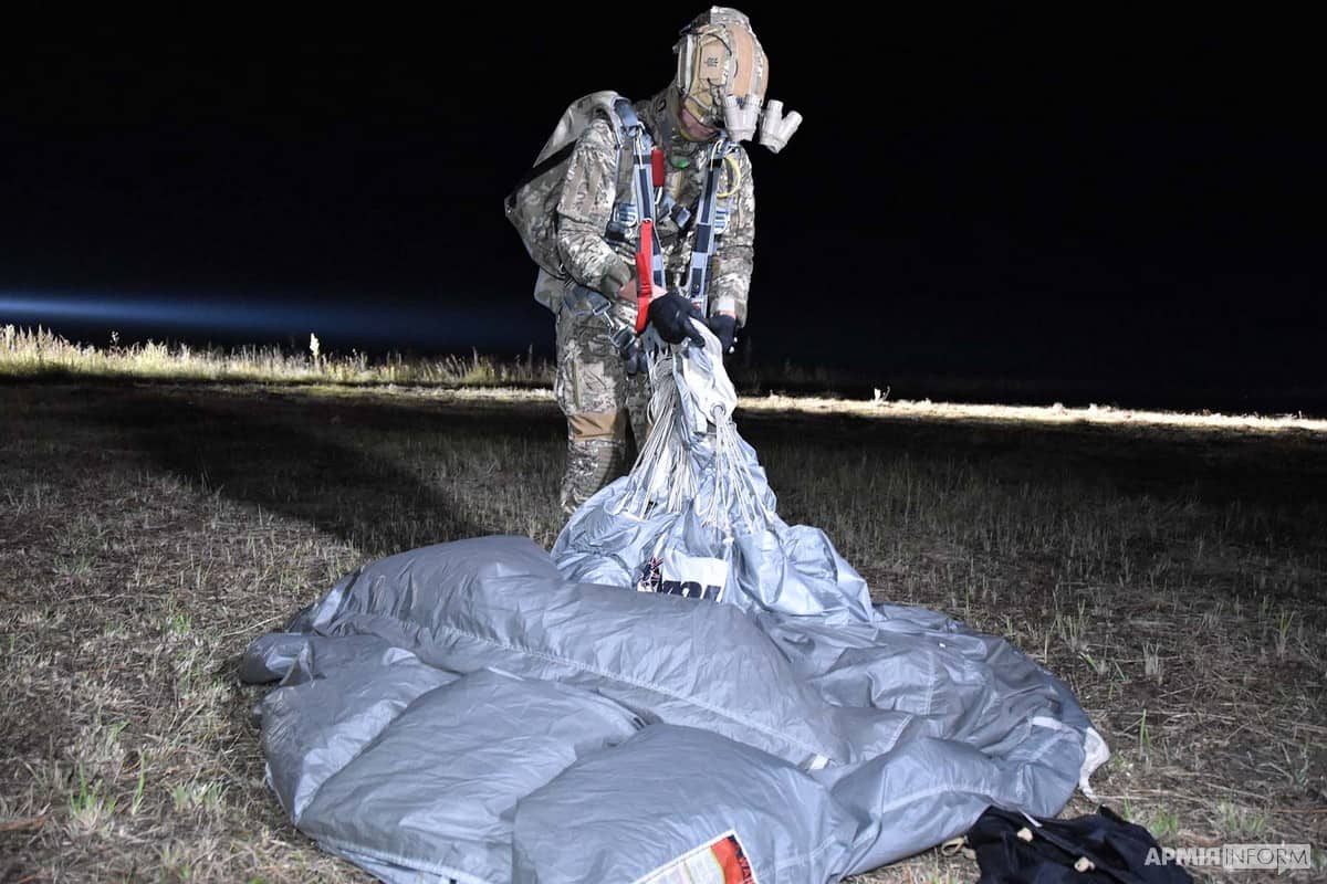 Офіцер-інструктор, який відповідає за бойову підготовку підрозділів Сил спеціальних операцій ЗСУ, розповів, що на відміну від нічних стрибків з круглими куполами, стрибки «на крилі» не дають великого розосередження на приземленні.