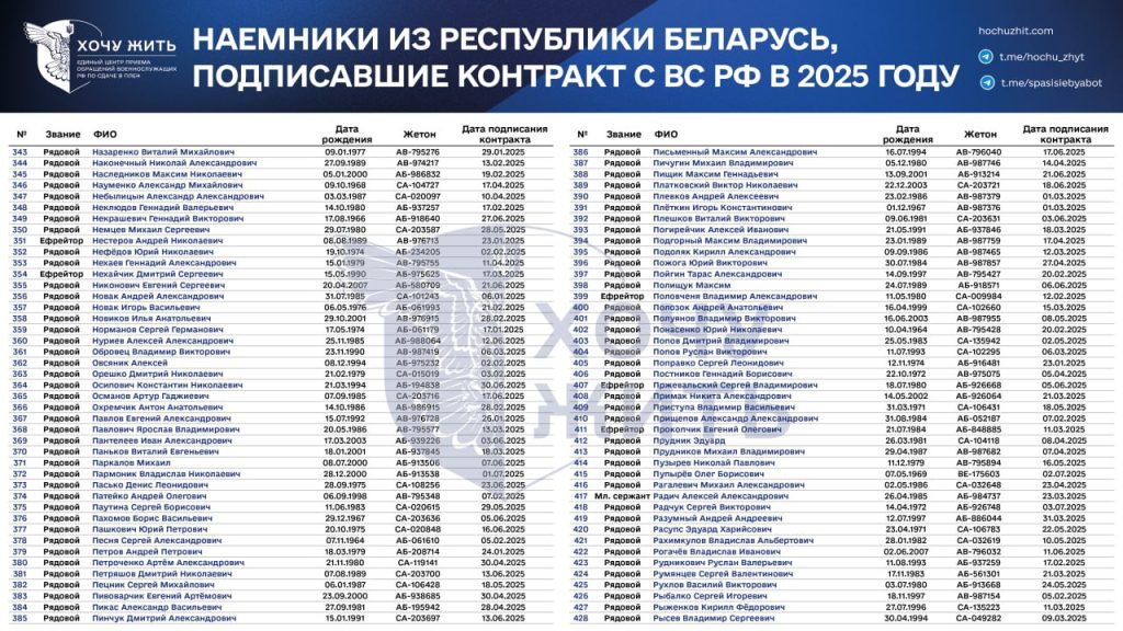 Раніше проєкт публікував аналогічний список із 742 білоруських громадян, які підписали контракт упродовж 2023-2024 років та воювали на боці російської армії проти України.