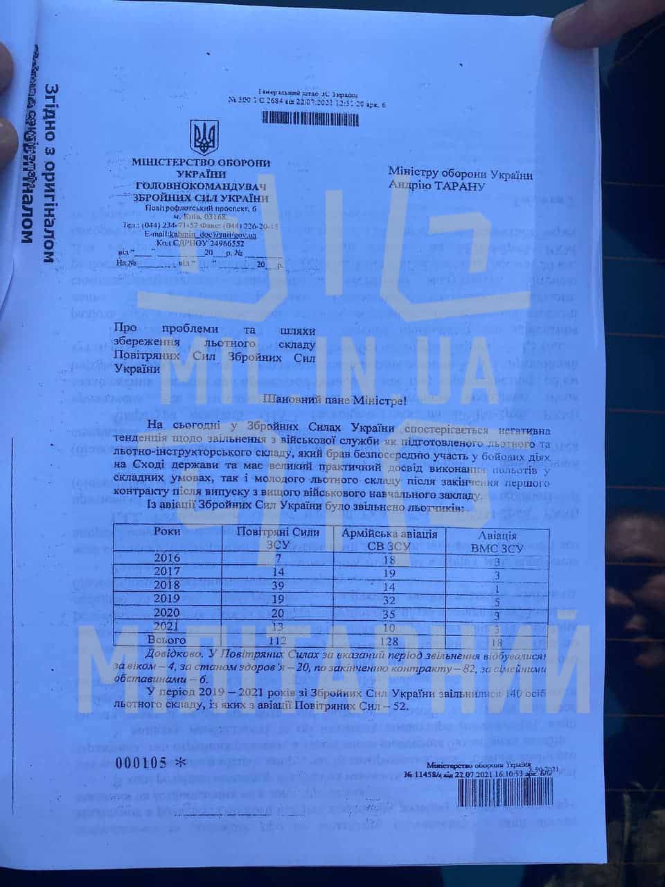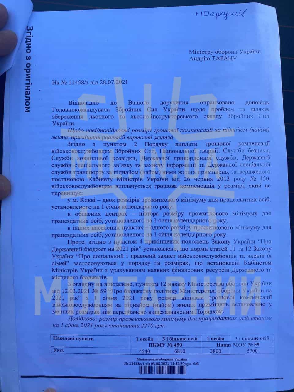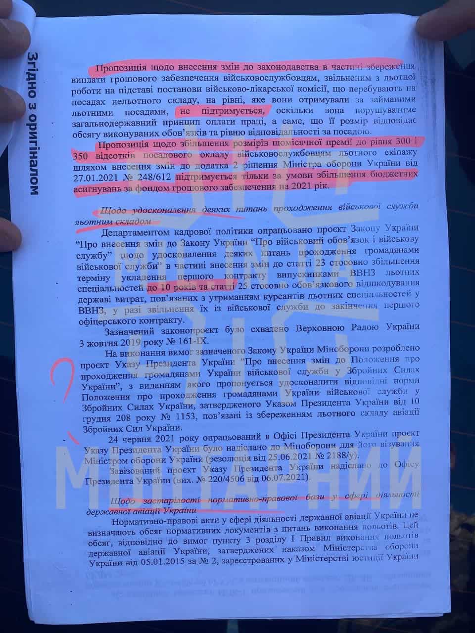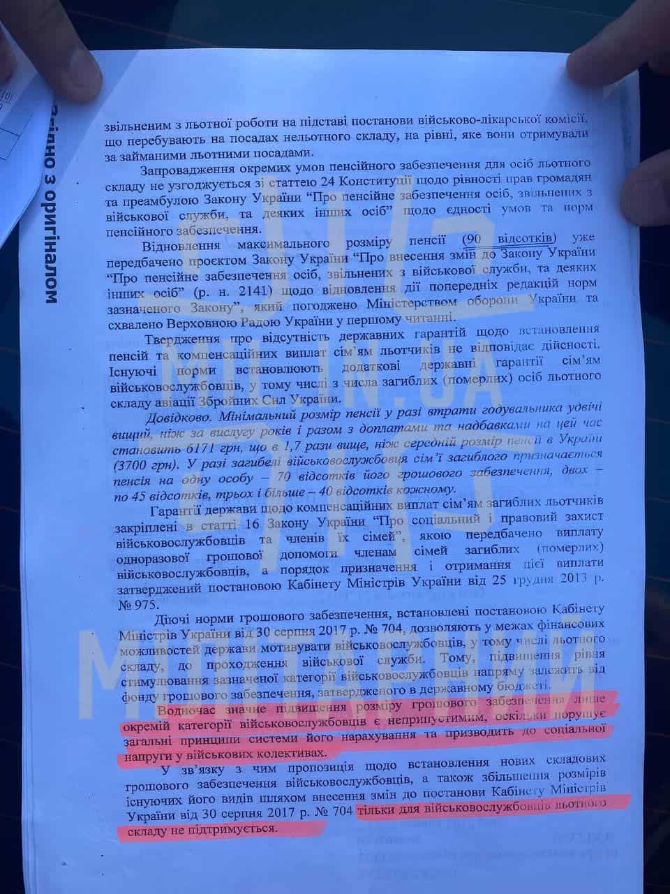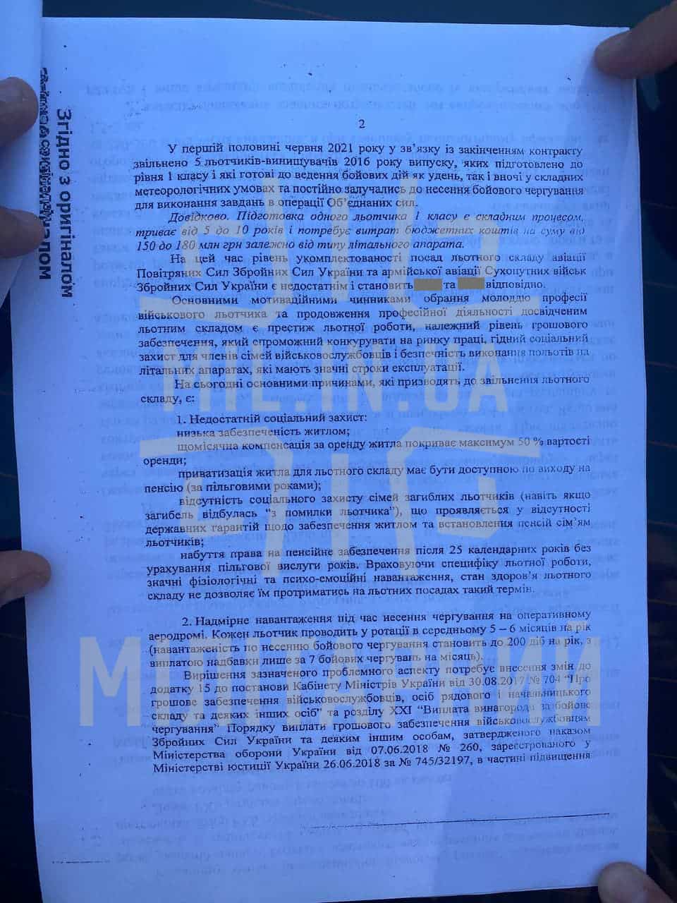 Нещодавно ми писали, що у Командуванні виду обіцяють негайні зміни для збереження льотчиків у своїх лавах, проте у копії листа від 22 липня 2021 року, що ми отримали, свідчить про небажання виправляти ситуацію з боку Міністерства оборони України.