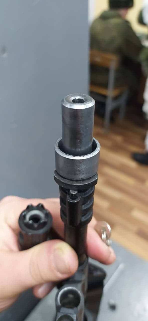 На показаних фото російським пропагандистом Алєксандром Сладковим видно значні раковини на газовому поршні автомату, тріщини на пластиковій цівці, зламлена колодка мушки, тощо.
