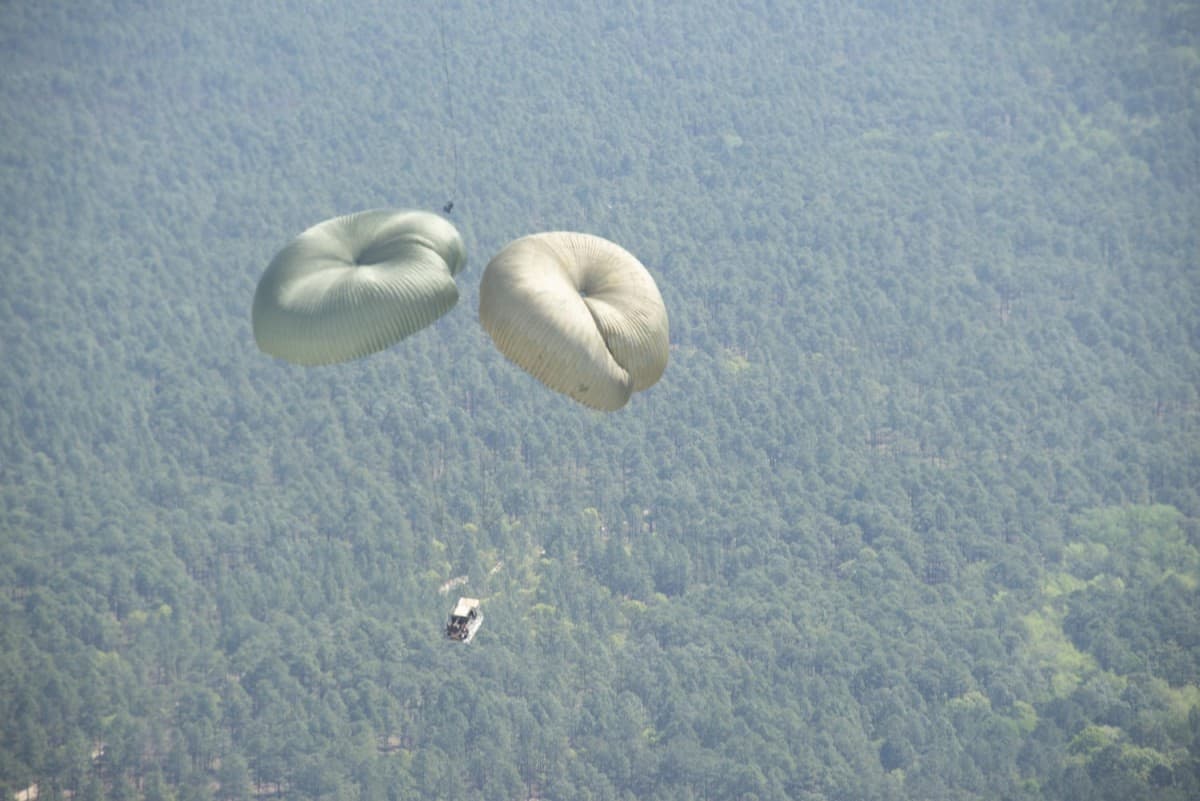 У США армійці вперше десантували парашутним способом легкий тактичний всюдихід від GM Defense створений по програмі Infantry Squad Vehicle (ISV).