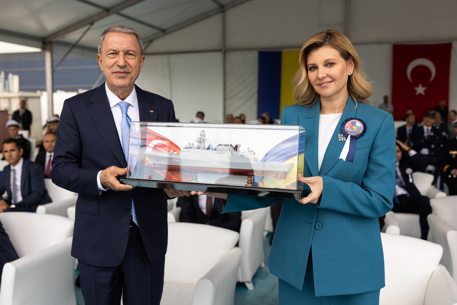 «Сьогодні у Туреччині мала честь спустити на воду корвет, який служитиме Україні й водночас матиме турецьке серце», – розповіла Олена Зеленська.