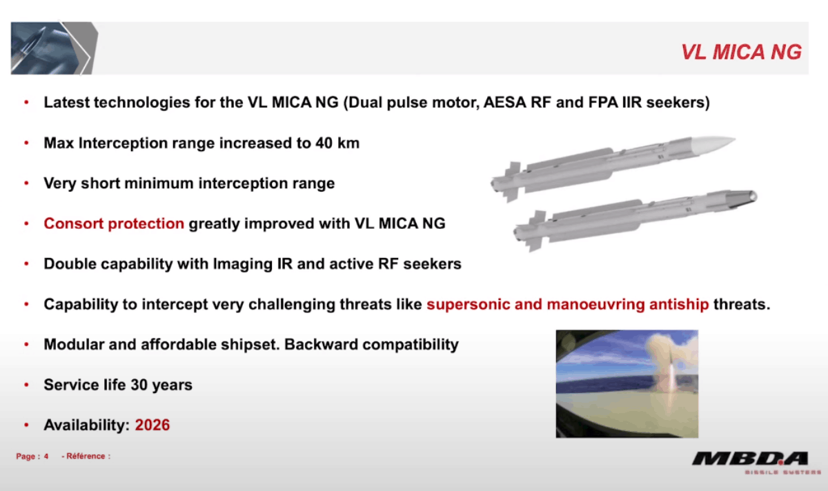 Водночас системами вертикального пуску VL MICA оснащені близько 40 кораблів ВМС Франції та інших країн, тому підвищення потенціалу для протидії майбутнім загрозам буде, безумовно, затребувано.