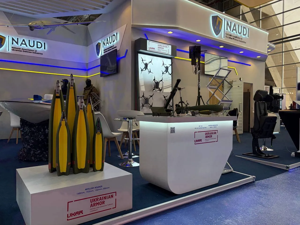 Загалом на виставці Україну представляють 17 компаній з власними стендами, а також об’єднаний стенд NAUDI. Серед учасників — Українська бронетехніка, яка демонструє самохідну артилерійську установку «Богдана», наземний роботизований комплекс Protector та бронеавтомобіль «Варта».