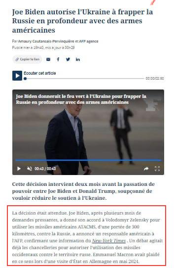 Зранку 18 листопада 2024 року з матеріалу видання зникла згадка про погодження використання ракет по території Росії. Тому не відомо чи попередня інформація відповідала дійсності, чи була не публічною або помилкою редактора французького видання.