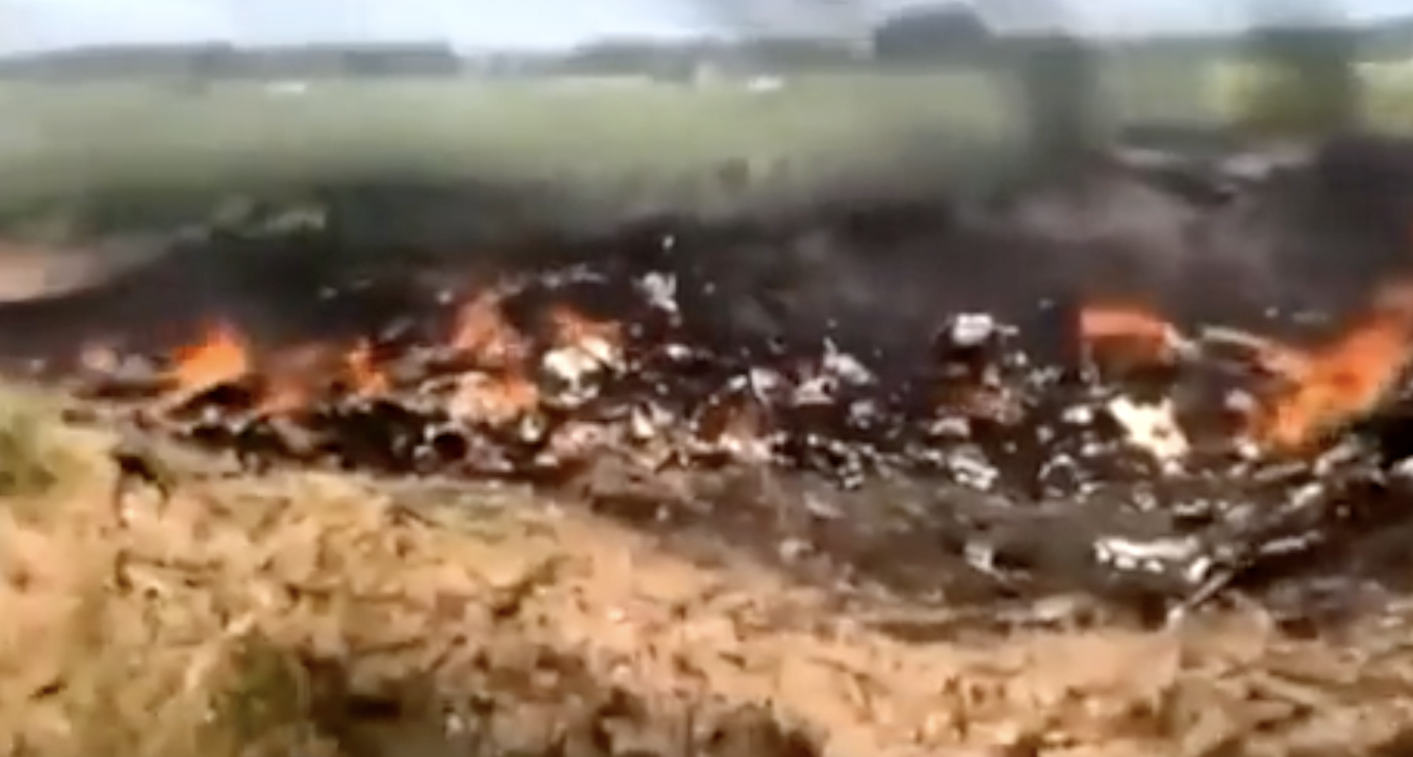 Екіпаж літака катапультувався. На відео видно пілотів, які лежать в полі.