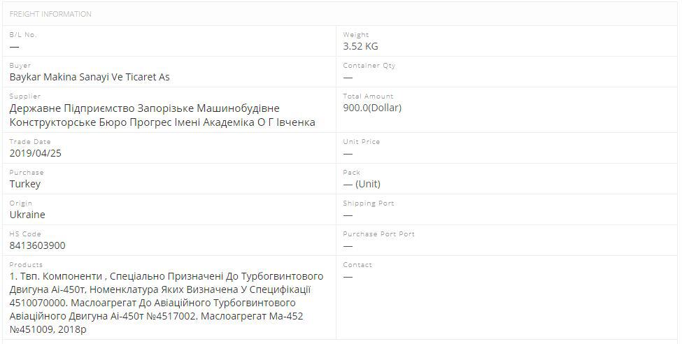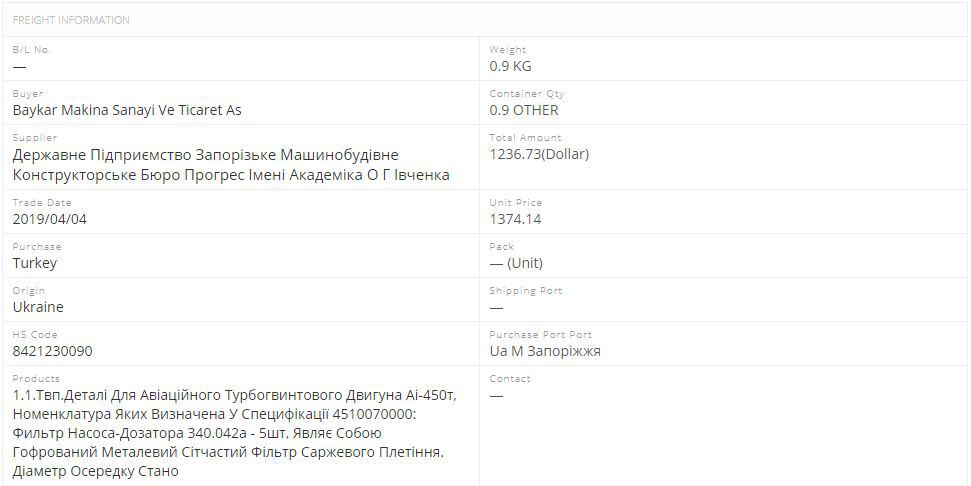 Відповідно до інформації з сервісу Great Export Import (en.52wmb.com) поставки комплектуючих здійснювалися до квітня 2019-го року: