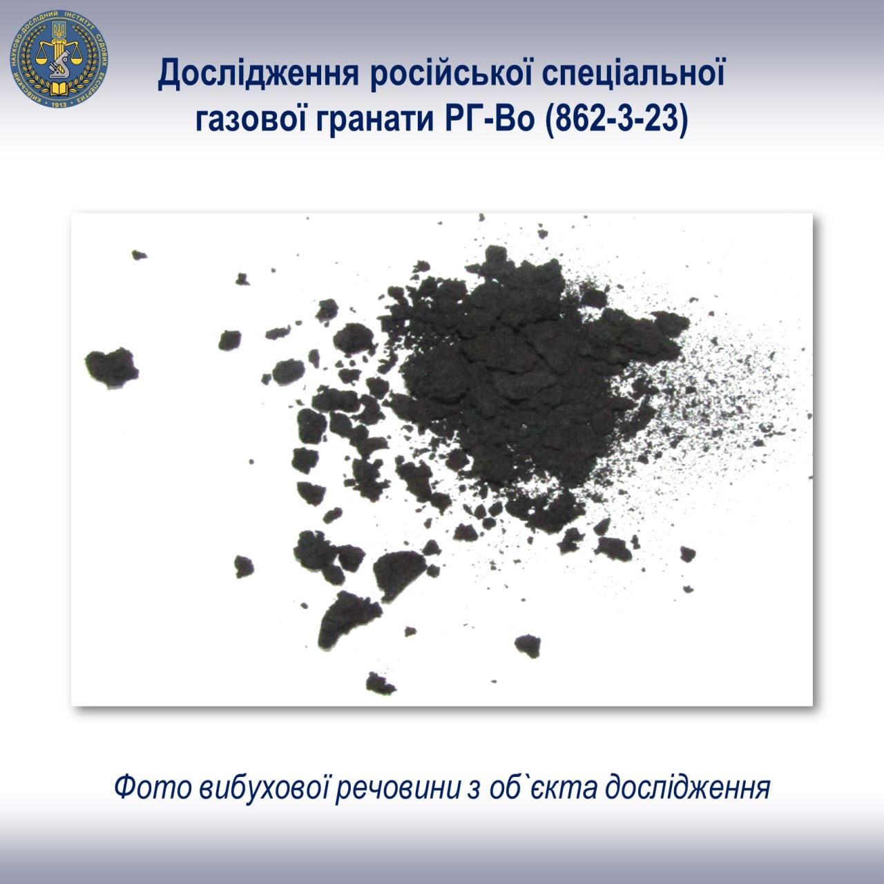 За результатами експертного аналізу встановлено, що у речовині з гранати присутні сліди бойової речовини подразнюючої дії, а саме хлорацетофенону (CN).