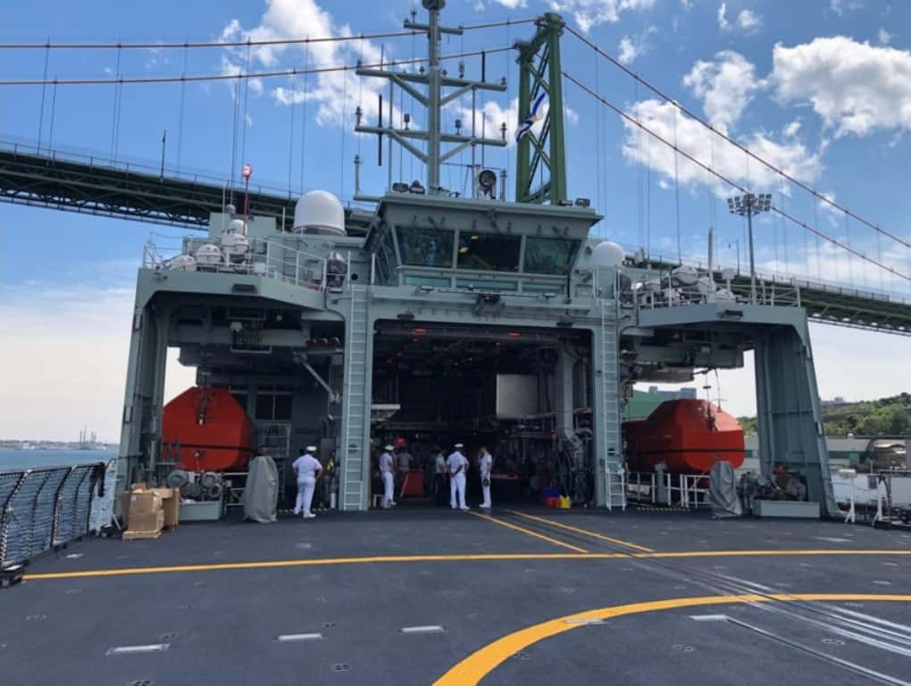 Ангар призначений для базування вертольота Sikorsky CH-148 Cyclone (S-92A). На кораблі є 20-тонний вантажний кран, два рятувальних катери, 12-метровий десантний катер АВСО, спеціальний відсік для техніки, що діє на льоду (снігоходи, тягачі).