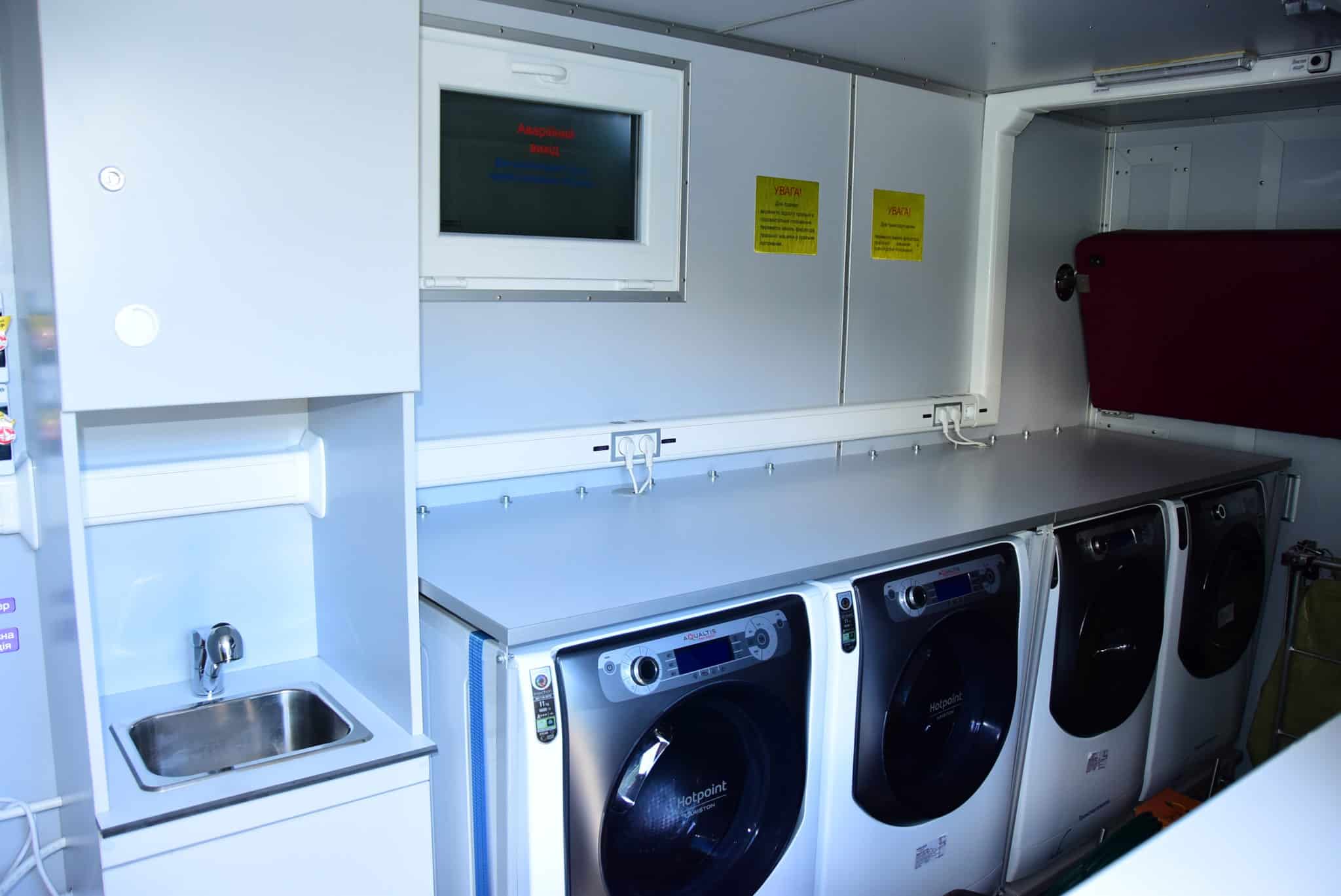 Лазне-пральний комплекс, виготовлений Крюківським вагонобудівним заводом, дозволяє військовослужбовцям на передовій випрати, висушити, попрасувати одяг та помитися.