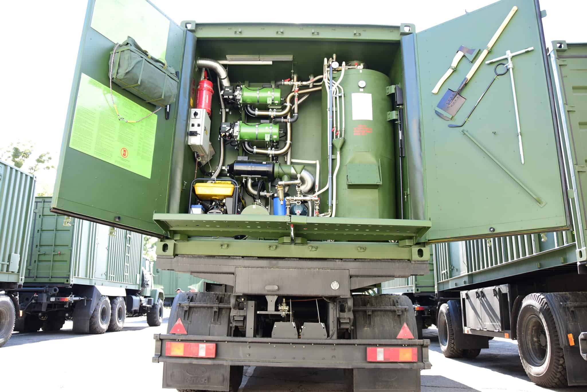 Нагадаємо, що в рамках Державного оборонного замовлення на 2019 рік для потреб Збройних Сил України було виготовлено 10 мобільних лазне-пральних комплексів, обладнаних сучасною технікою, електрогенераторами, та системою підігріву води з використанням рідкого або твердого палива. Вартість кожного з них складає понад 8,5 млн грн.